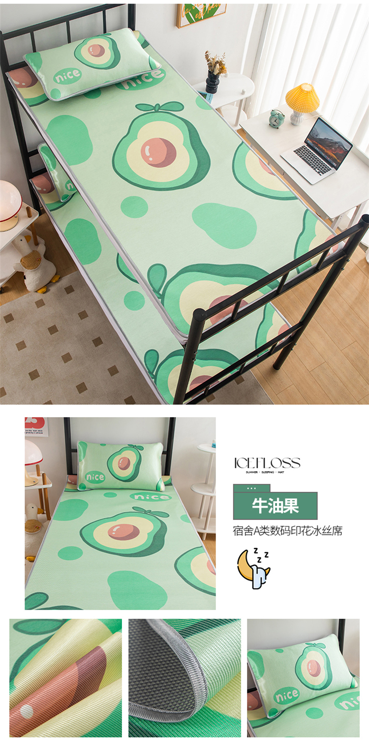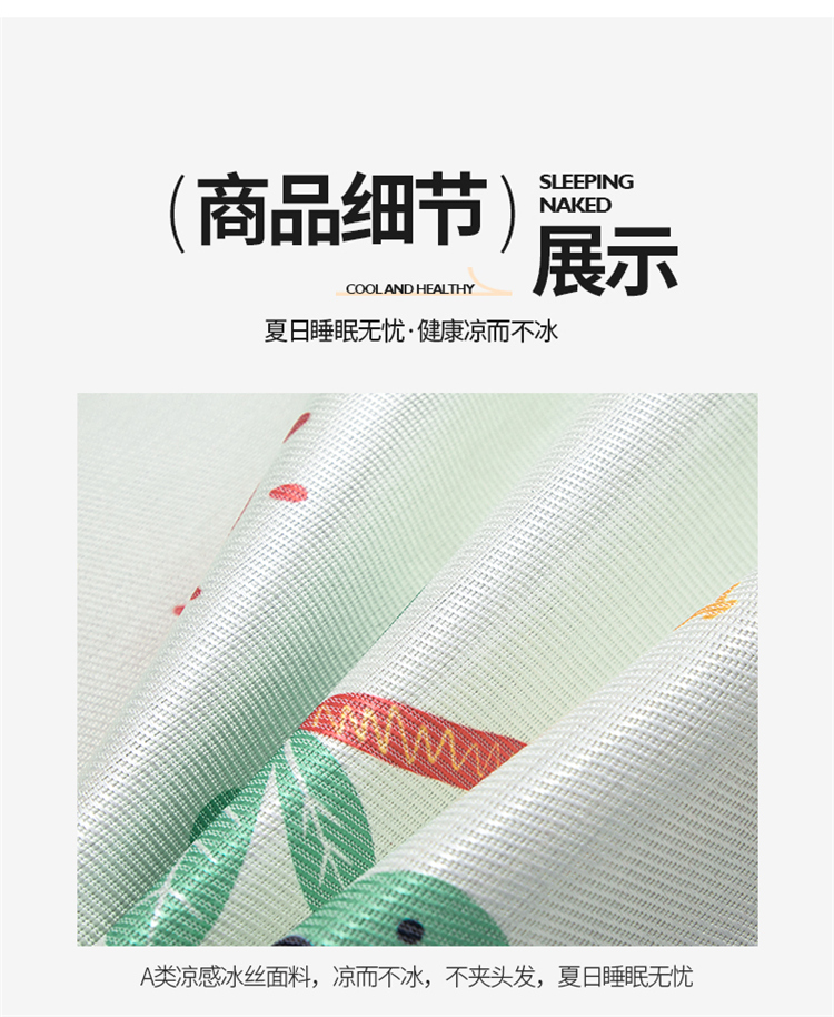 (总)欣品希家纺 2024新款A类学生款宿舍印花凉感丝凉席两件套,爱心兔子,粉蓝郁金香,绿格花,蘑菇熊,鸟语花香,袜子狗狗,夏天熊,竹子熊猫
