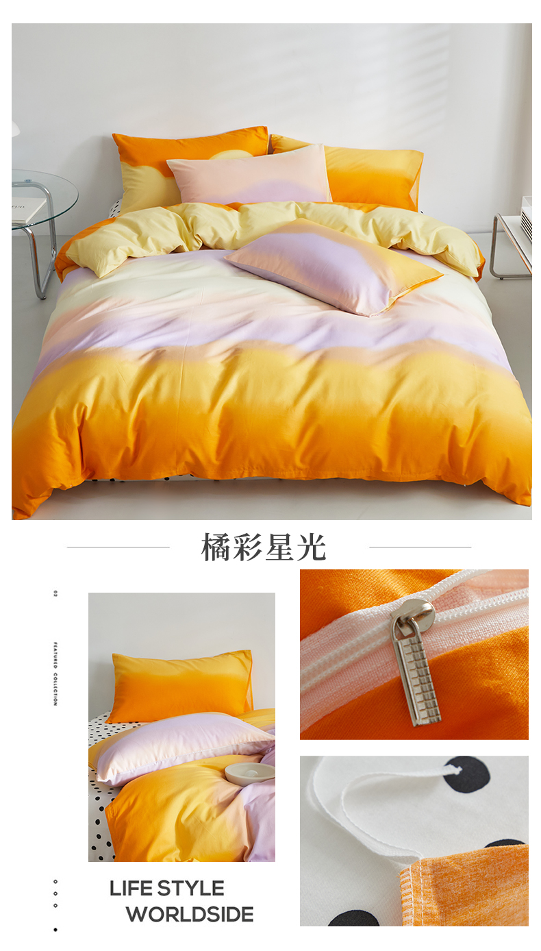 商品名称:木堇 2023新款13372纯色渐变印花四件套 橘彩星光