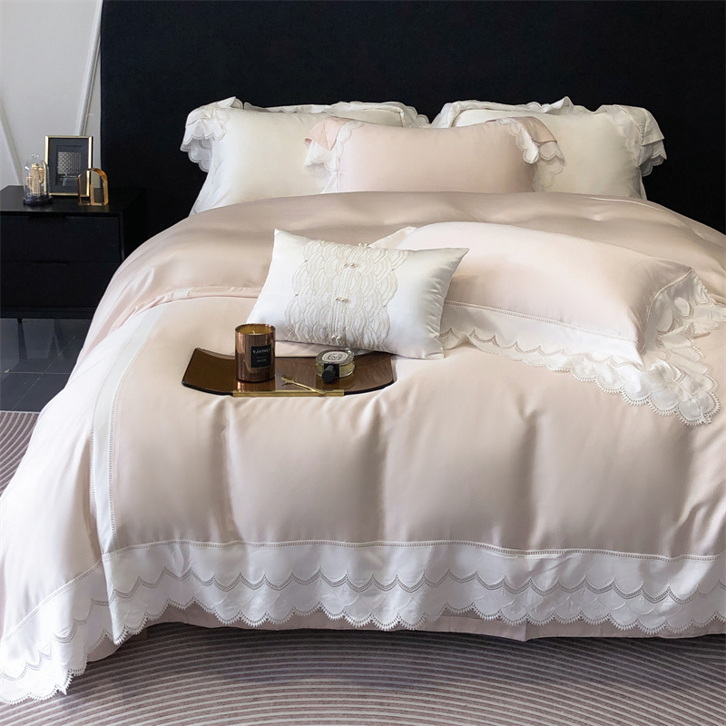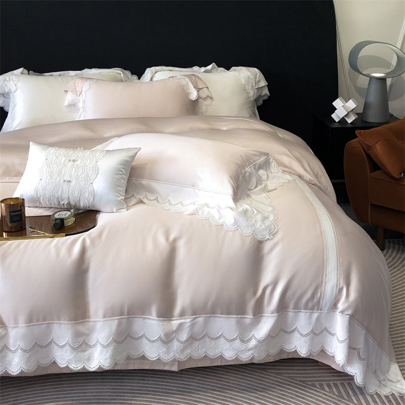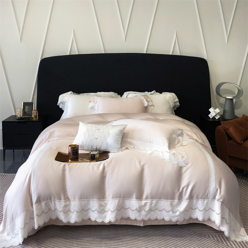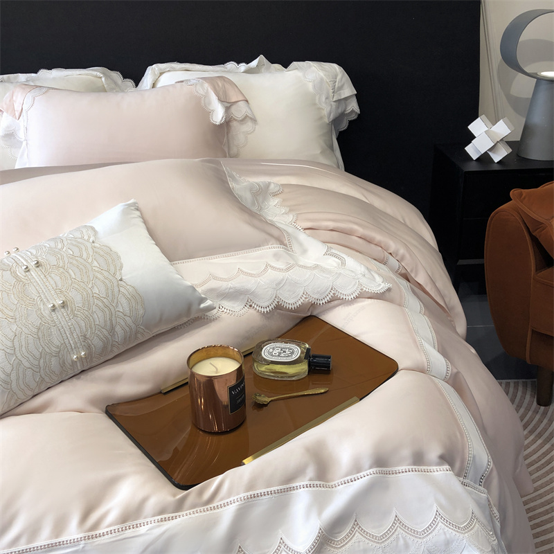 商品名称:馨蕊 2023新款100支CR工艺全棉系列四件套-棉卡曼丝 卡曼丝-初夏粉