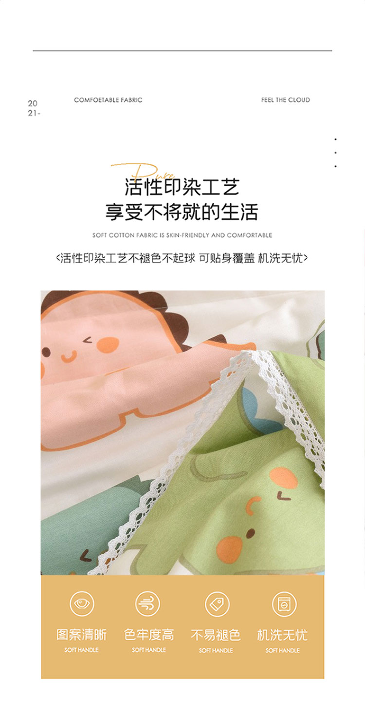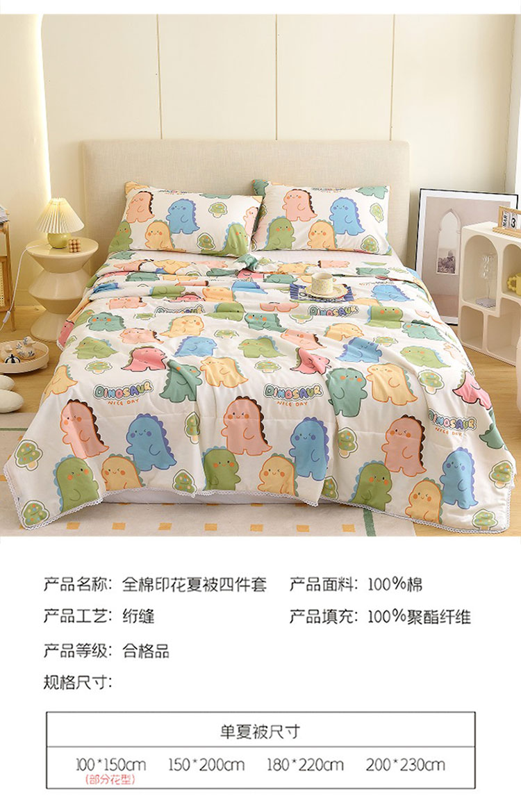商品名称:德芙 2023新款全棉印花卡通夏被四件套 活力恐龙