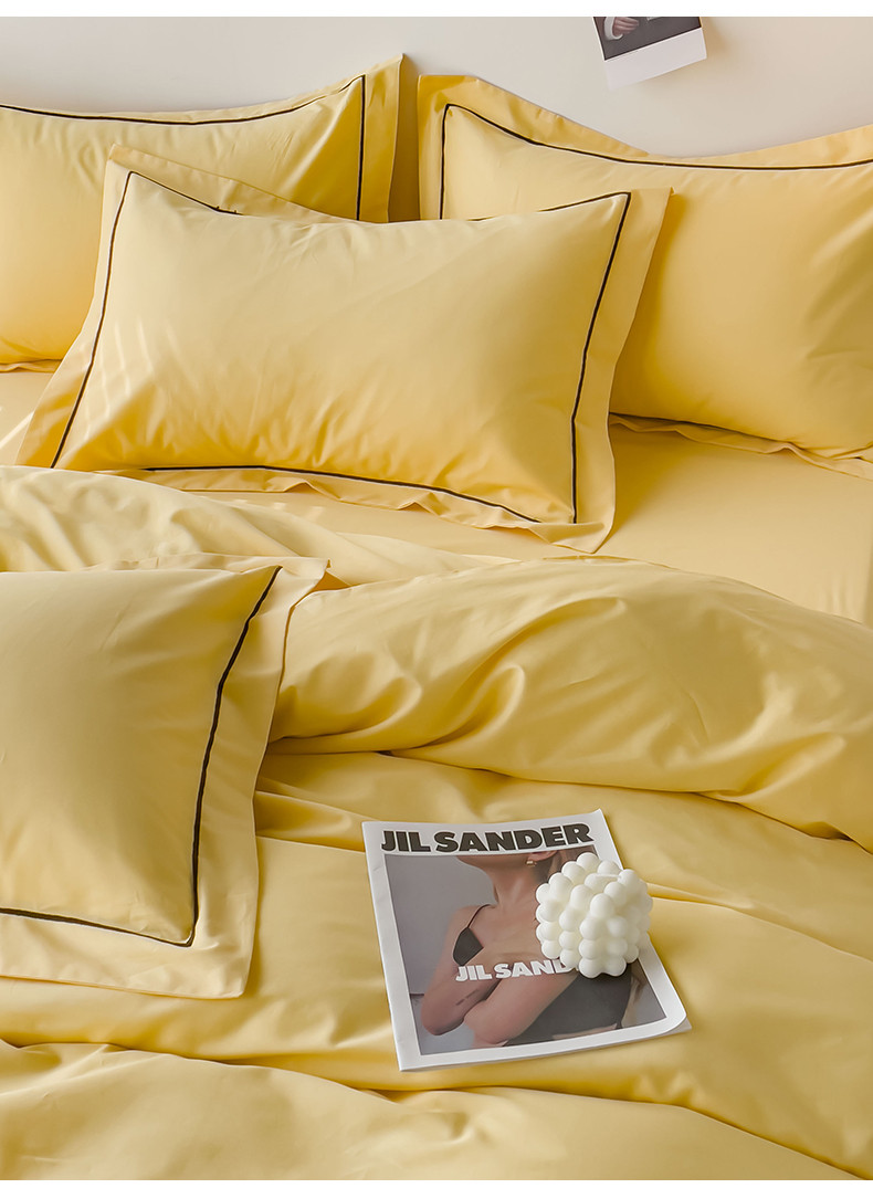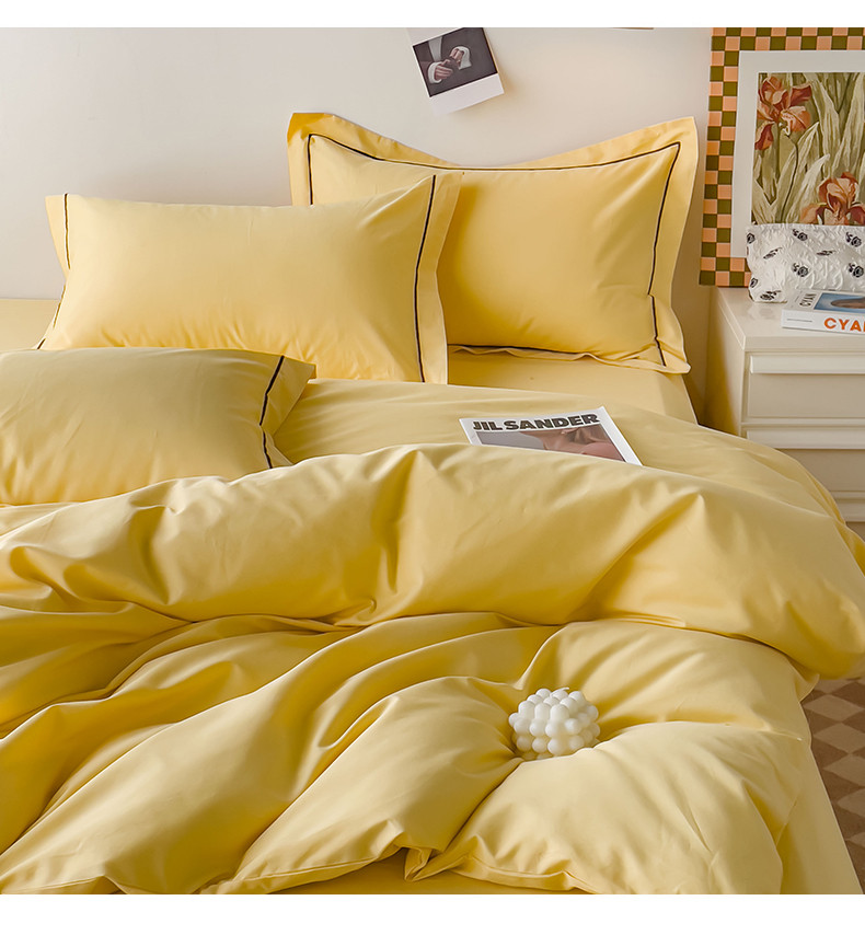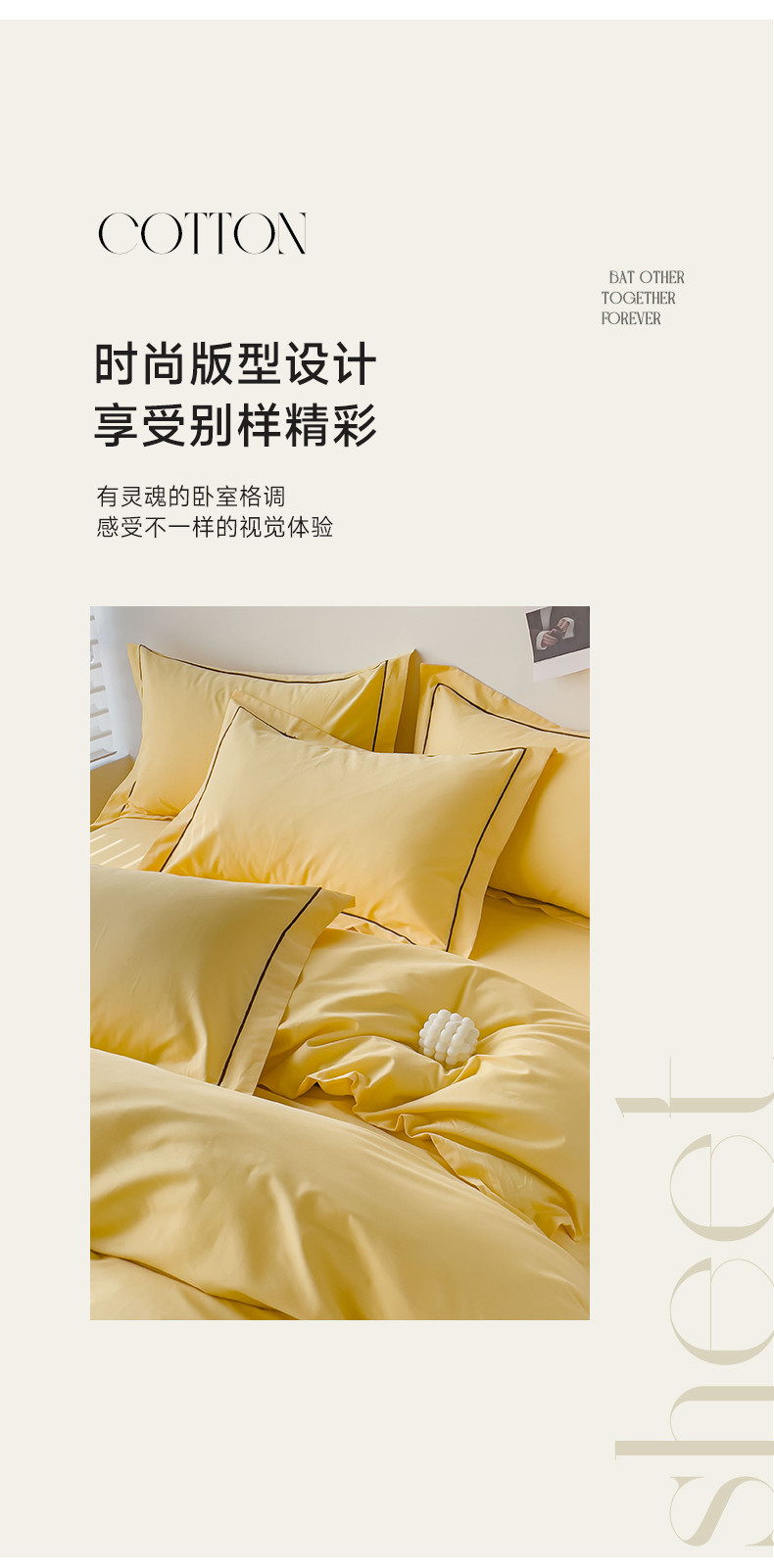 当前位置: 91家纺网 > 商品网购 > 床品套件 > 四件套 > 锦彩 40长绒棉13372全棉纯色混搭风四件套 初黄