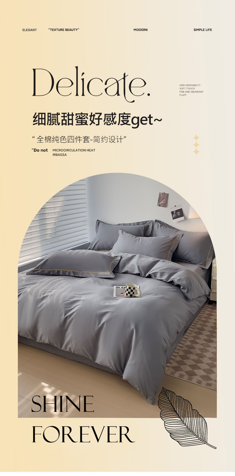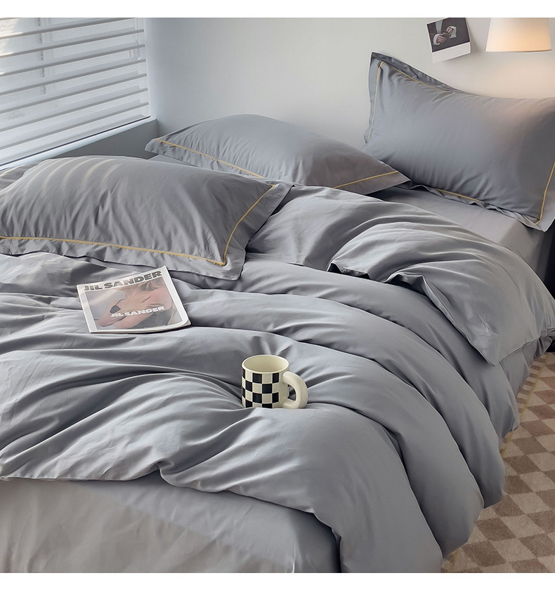 当前位置: 91家纺网 > 商品网购 > 床品套件 > 四件套 > 锦彩 40长绒棉13372全棉纯色混搭风四件套 中灰