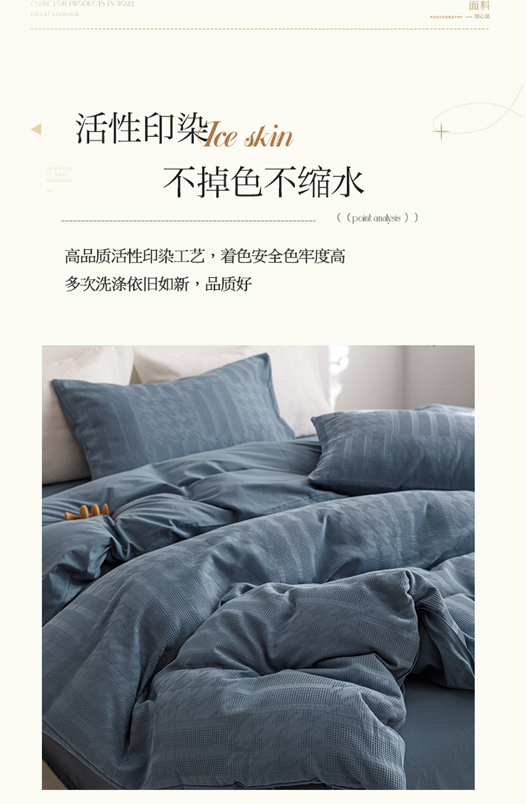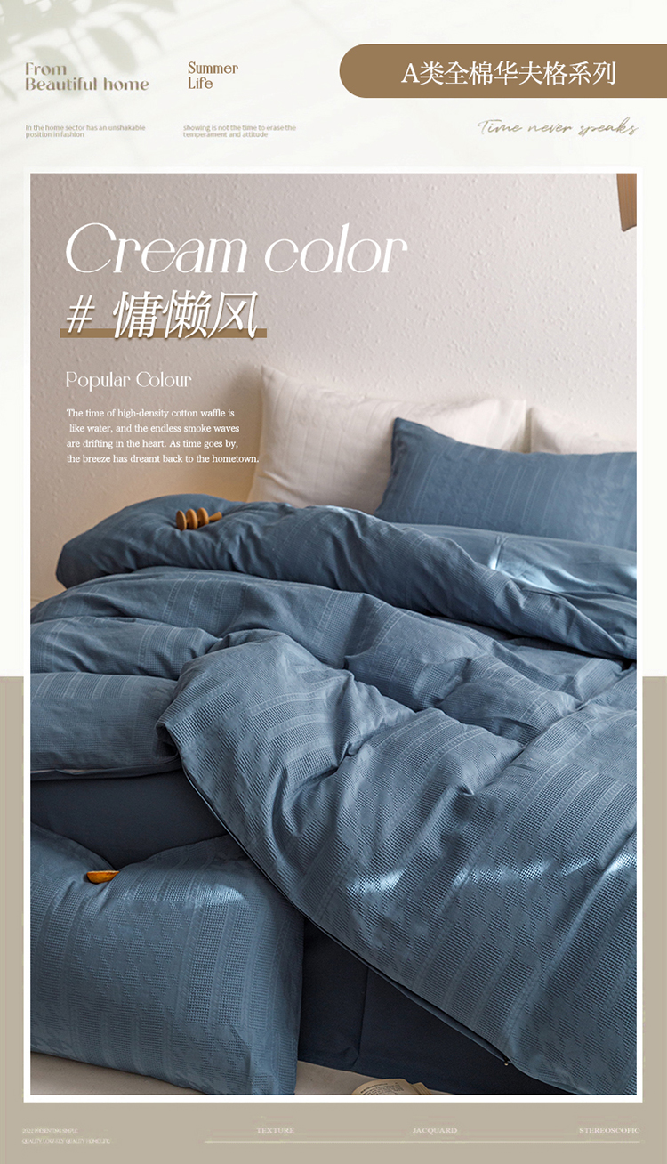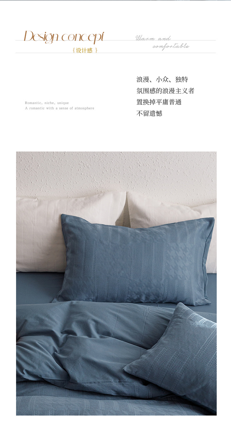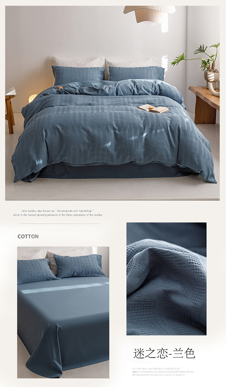 商品名称:瑞米家居2023新款A类华夫格四件套-爱尚-迷之恋 迷之恋-兰色