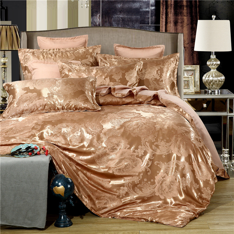 商品名称:2025新款贡缎提花四件套(简约款) 浪漫佳人-浅咖