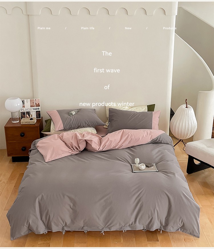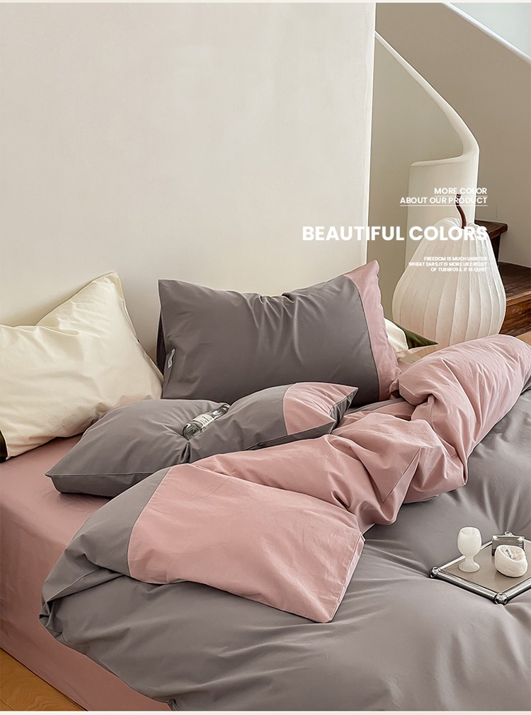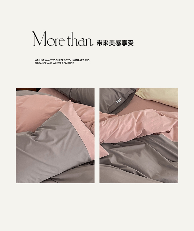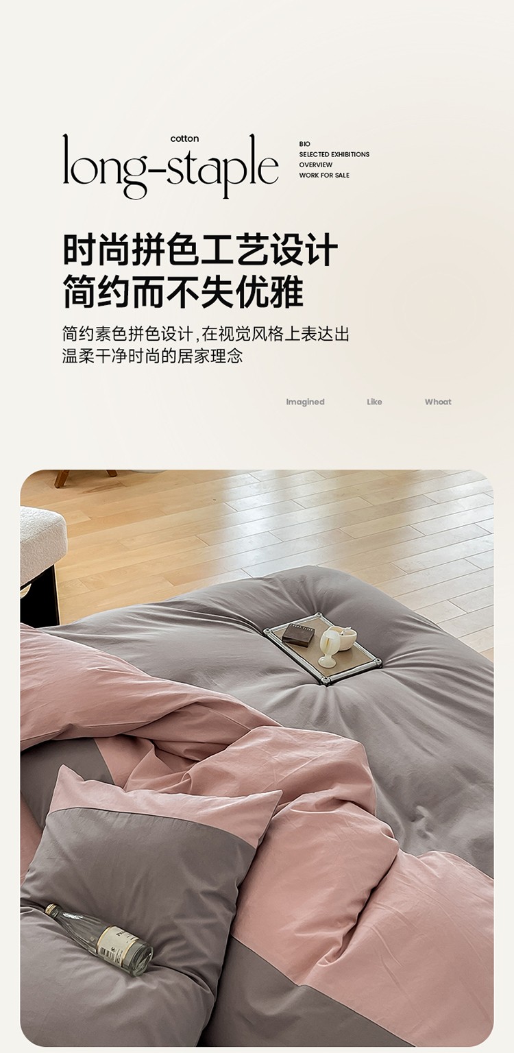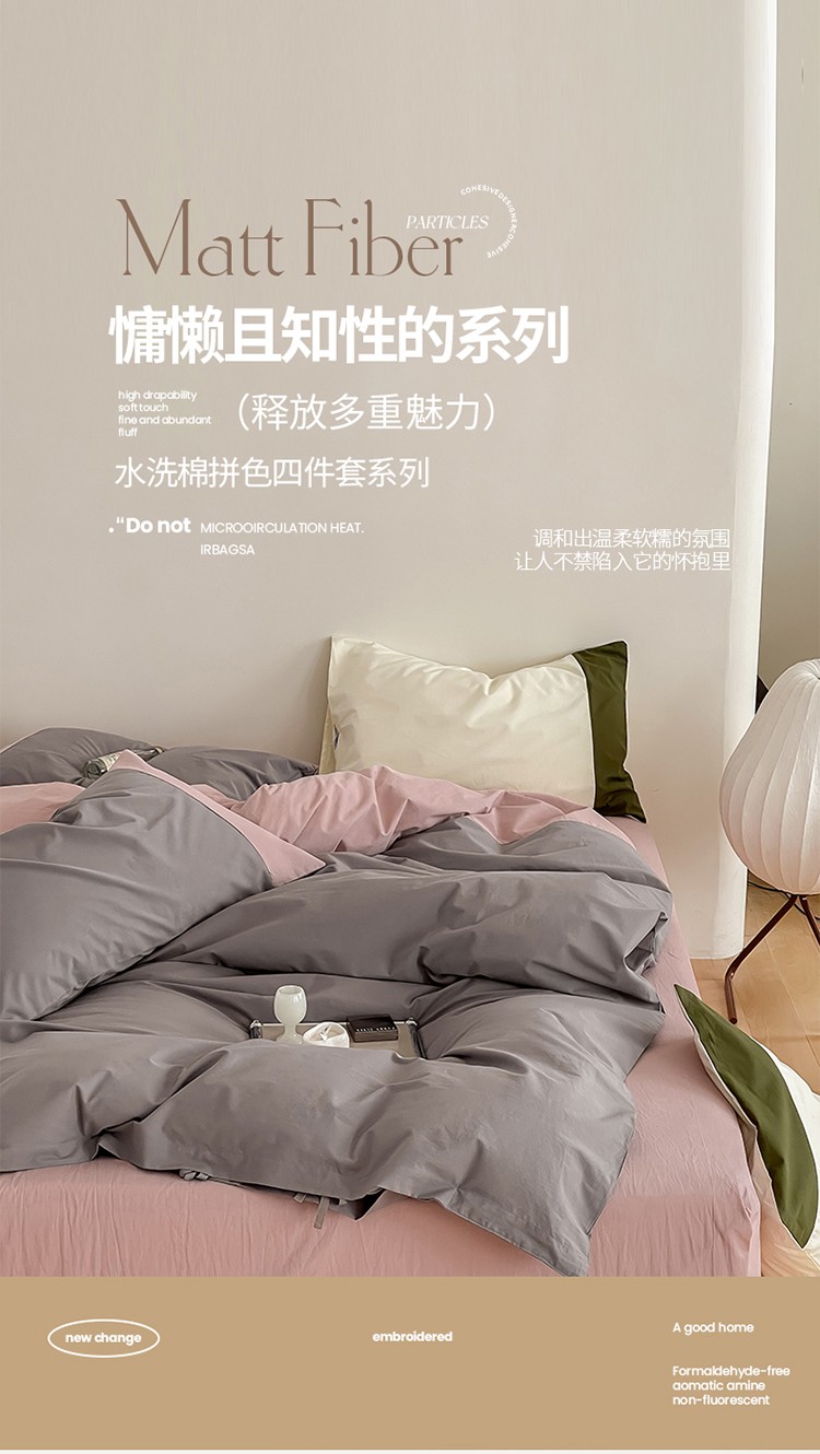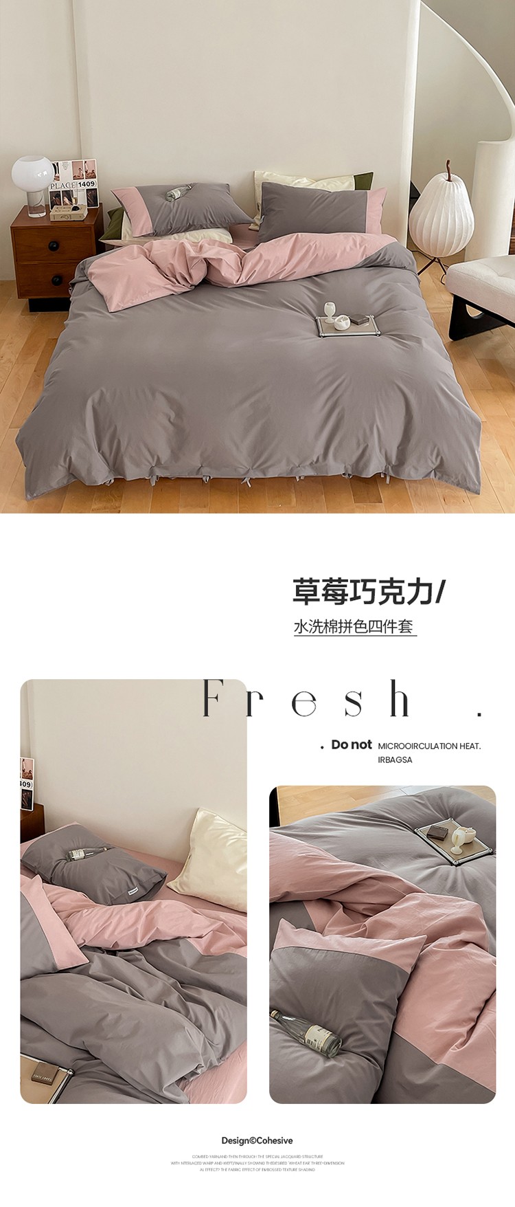华超针织 2023新款水洗棉拼色四件套 草莓巧克力