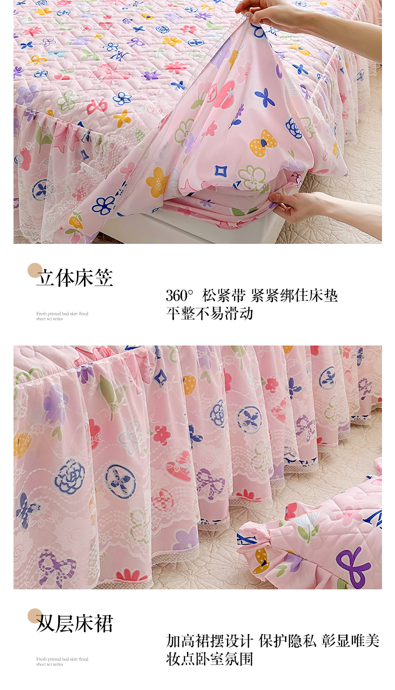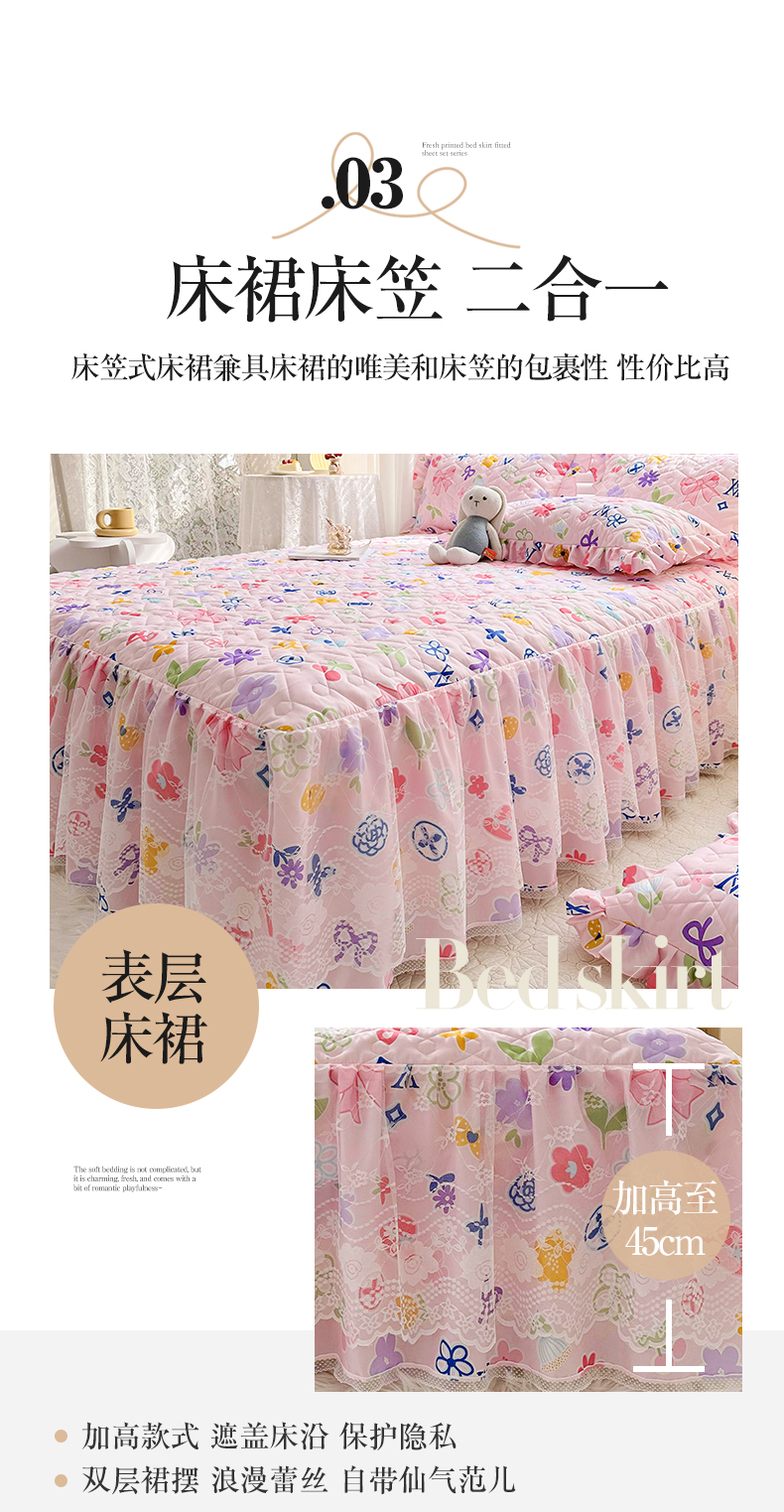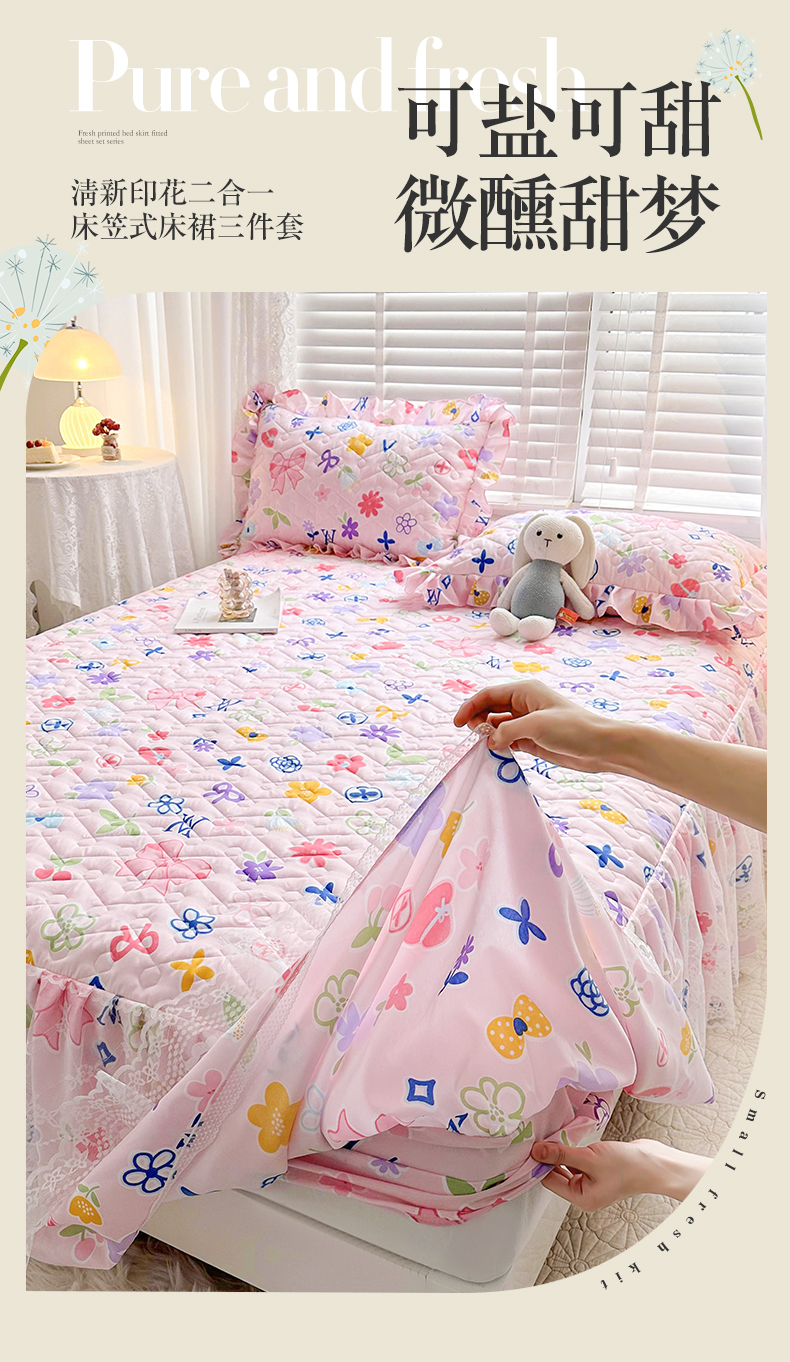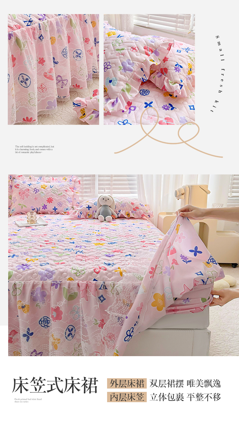 当前位置: 91家纺网 > 商品网购 > 床品套件 > 三件套 > 宜凡 2023新款云朵棉床笠式床裙三件套 黛西