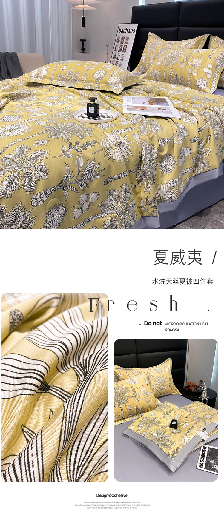 商品名称:花漾 2023直播爆款轻奢风宽边水洗真丝夏被四件套水洗天丝被子被芯 夏威夷