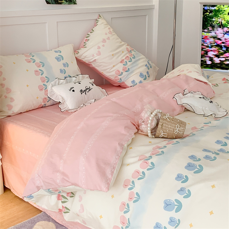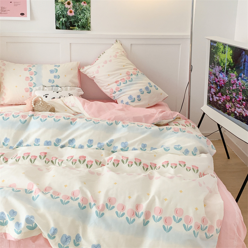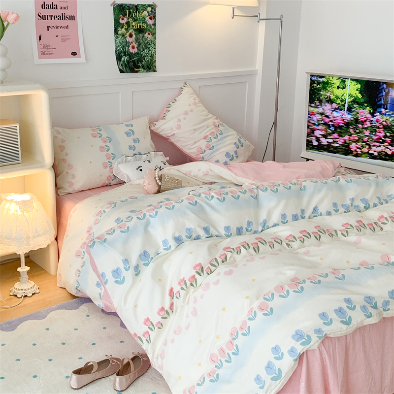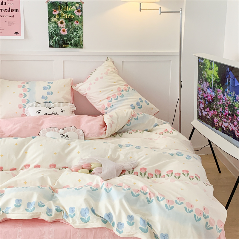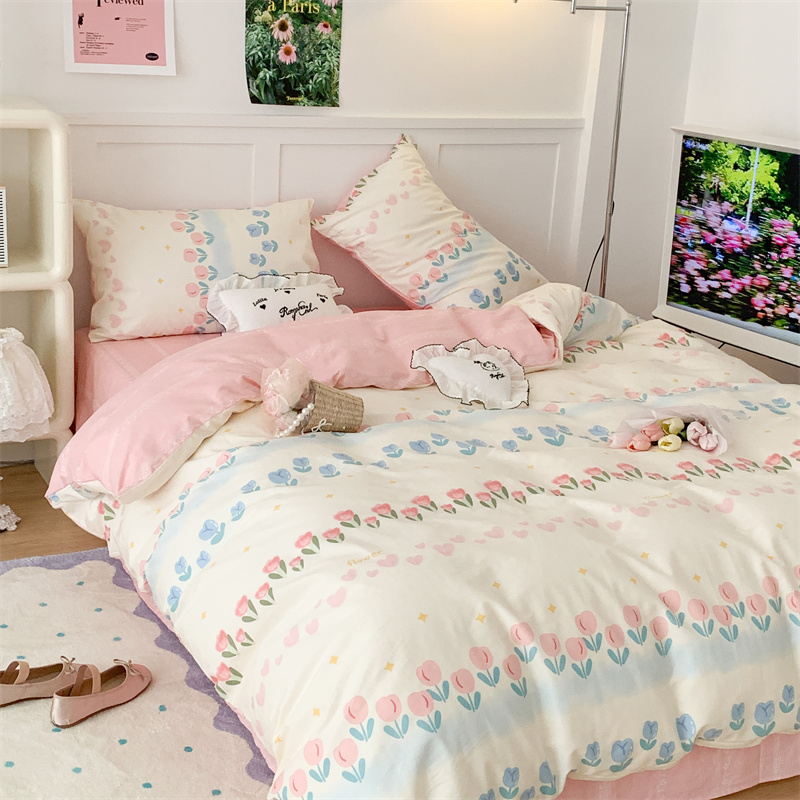商品名称:昔可家纺 2023新款全棉四件套-甜美春日ok 排排郁金香