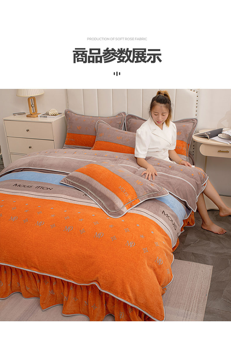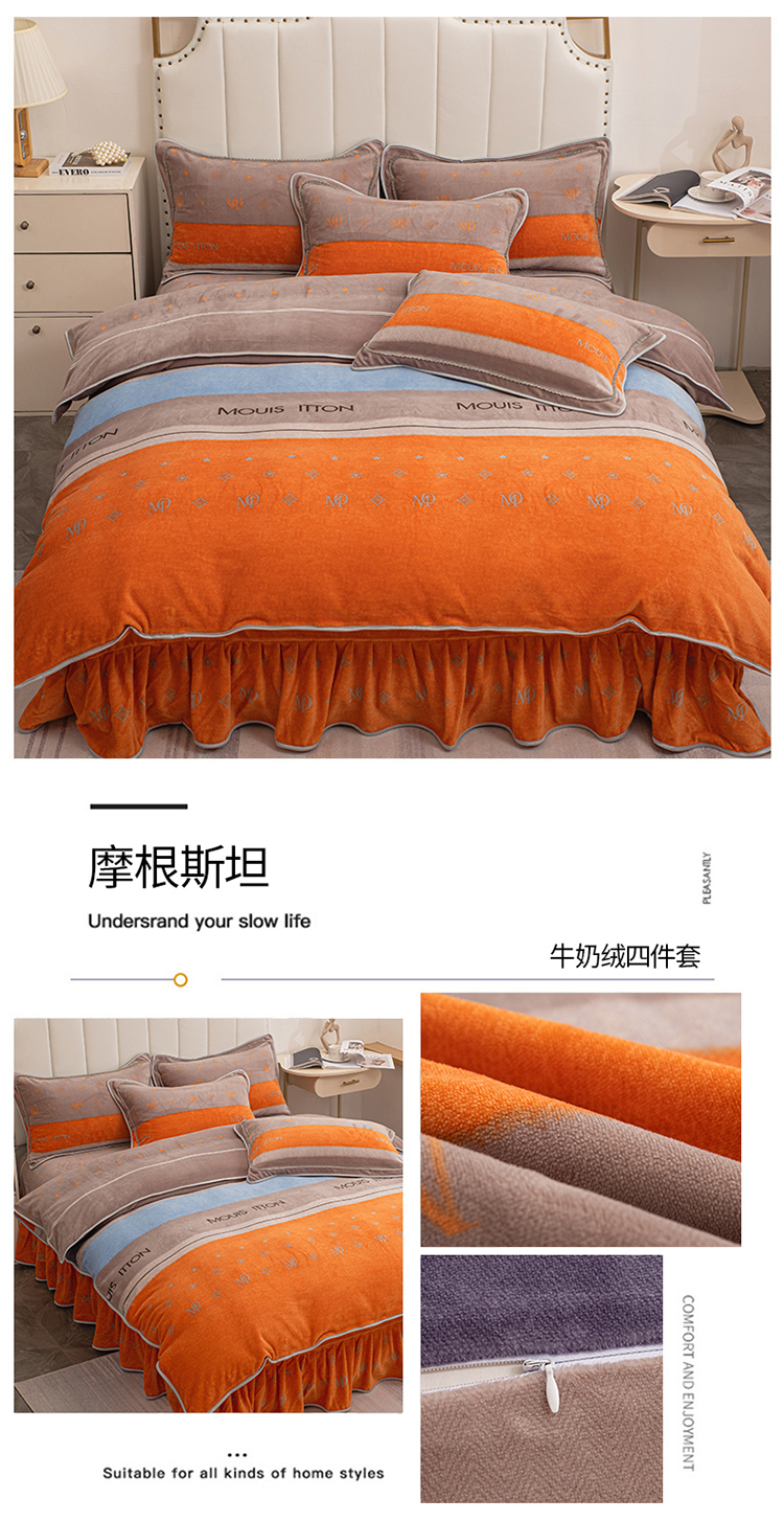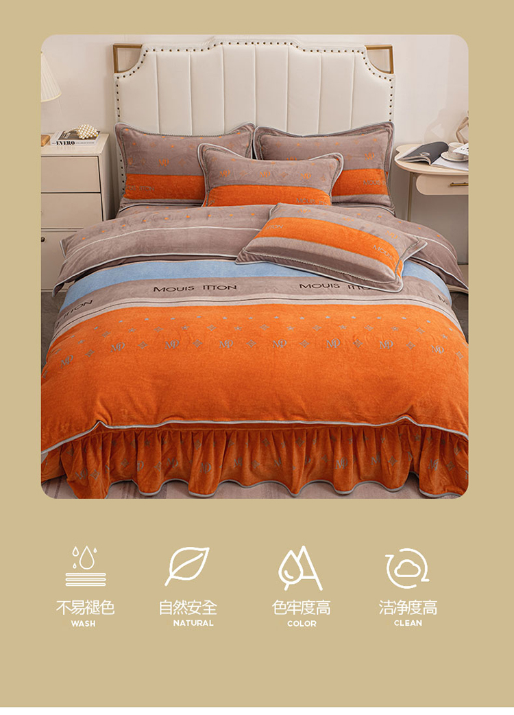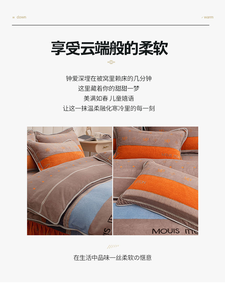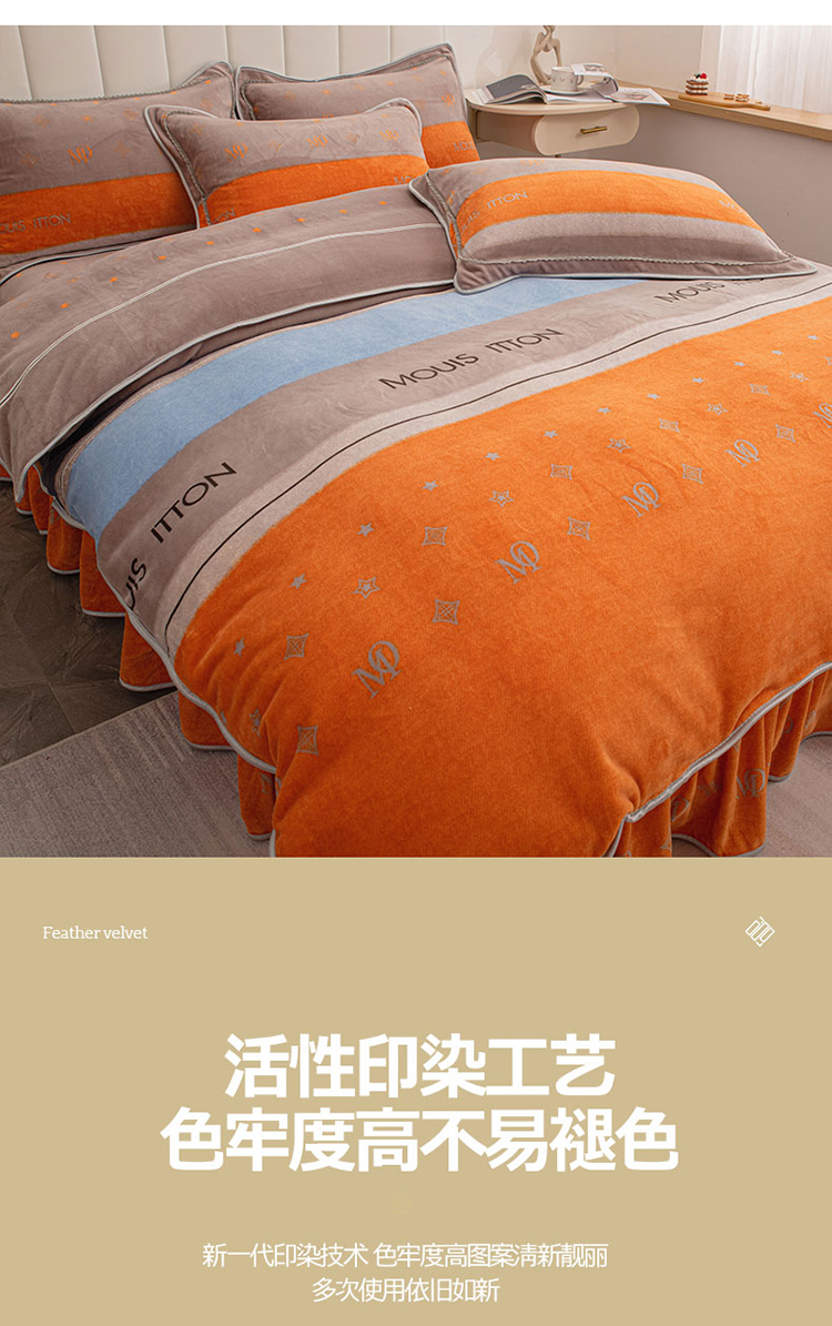 商品名称:登登家纺 加厚印花牛奶金貂法莱宝宝绒四件套 摩根斯坦