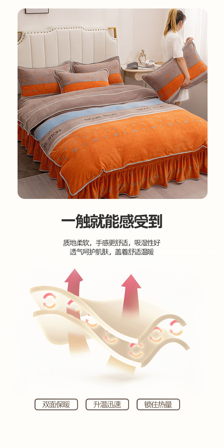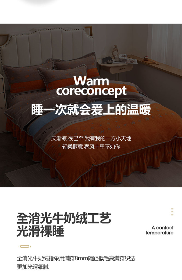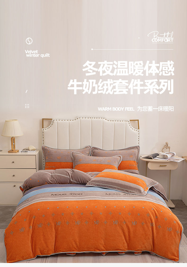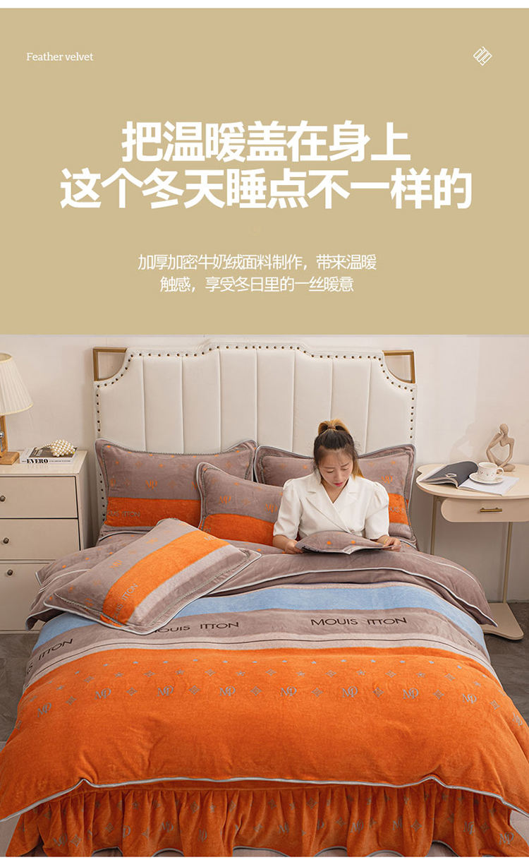 商品名称:登登家纺 加厚印花牛奶金貂法莱宝宝绒四件套 摩根斯坦
