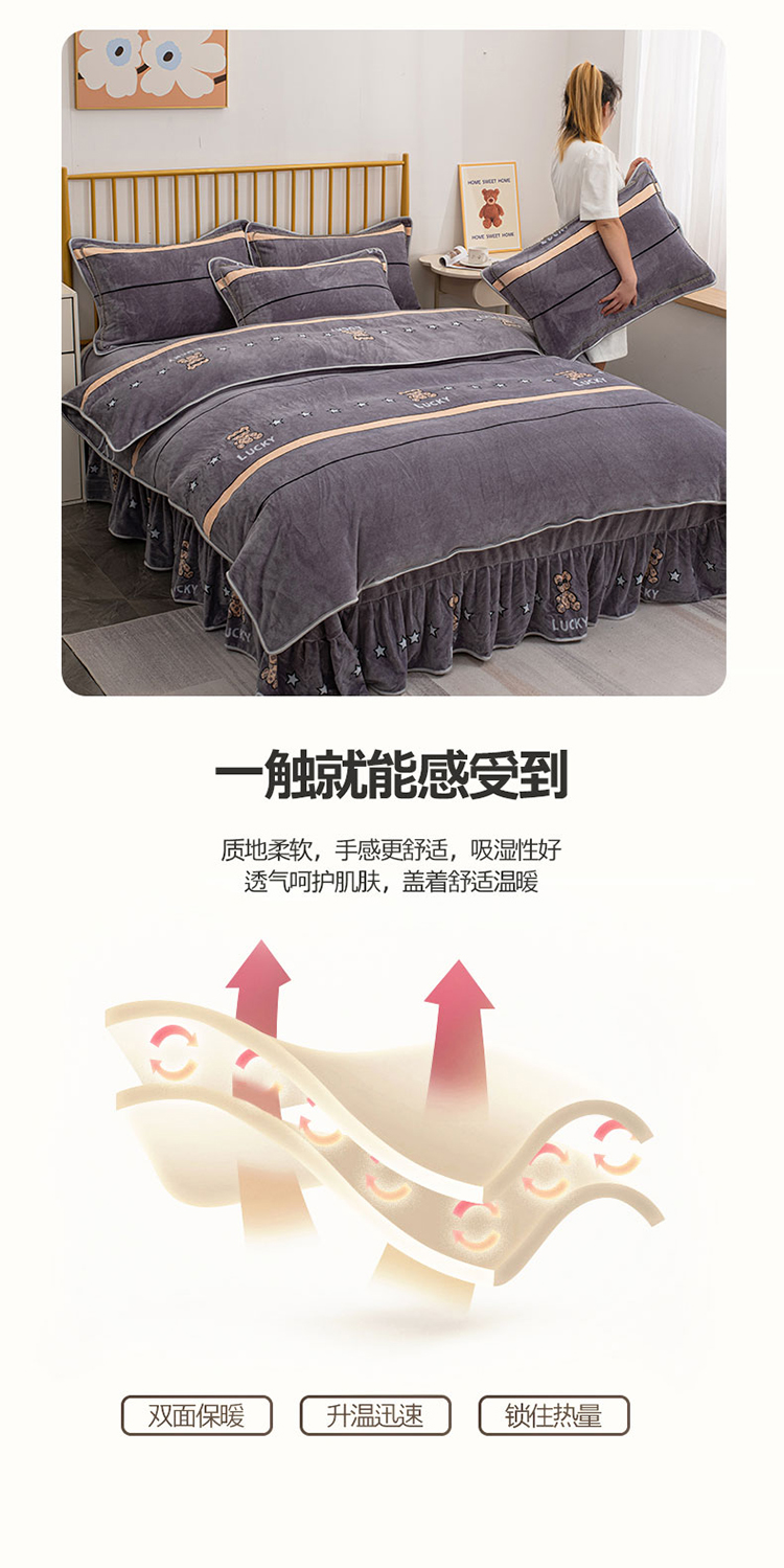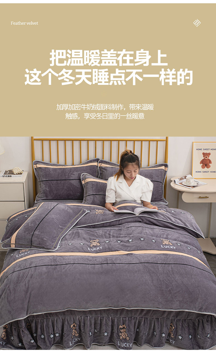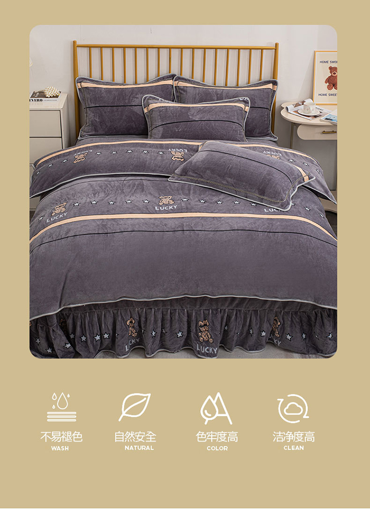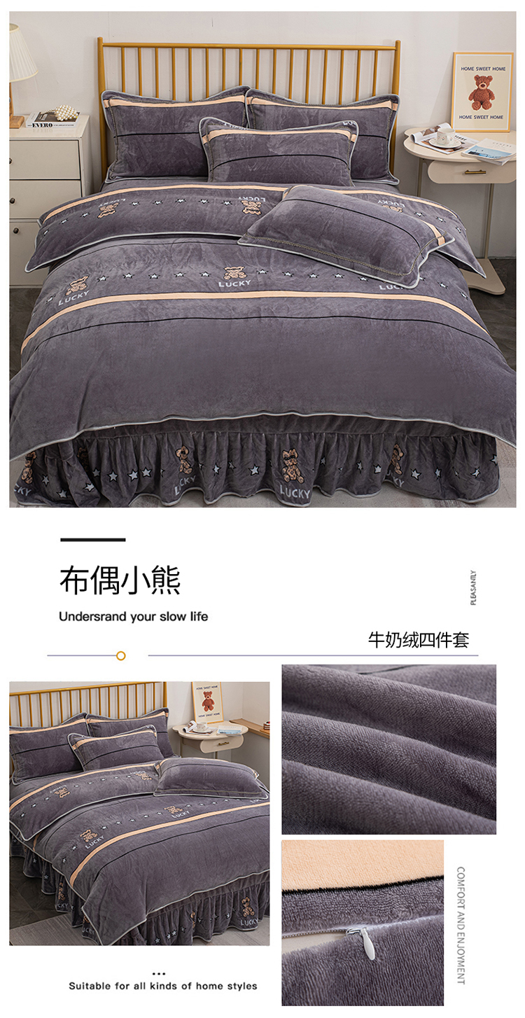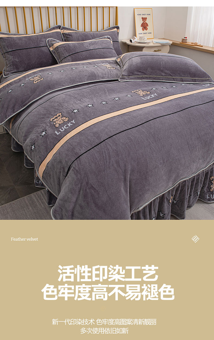 登登家纺 加厚印花牛奶金貂法莱宝宝绒四件套 布偶小熊