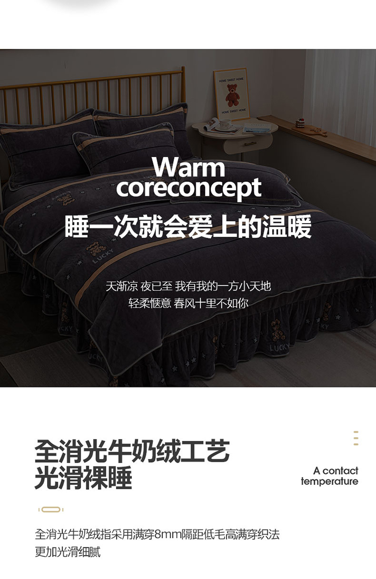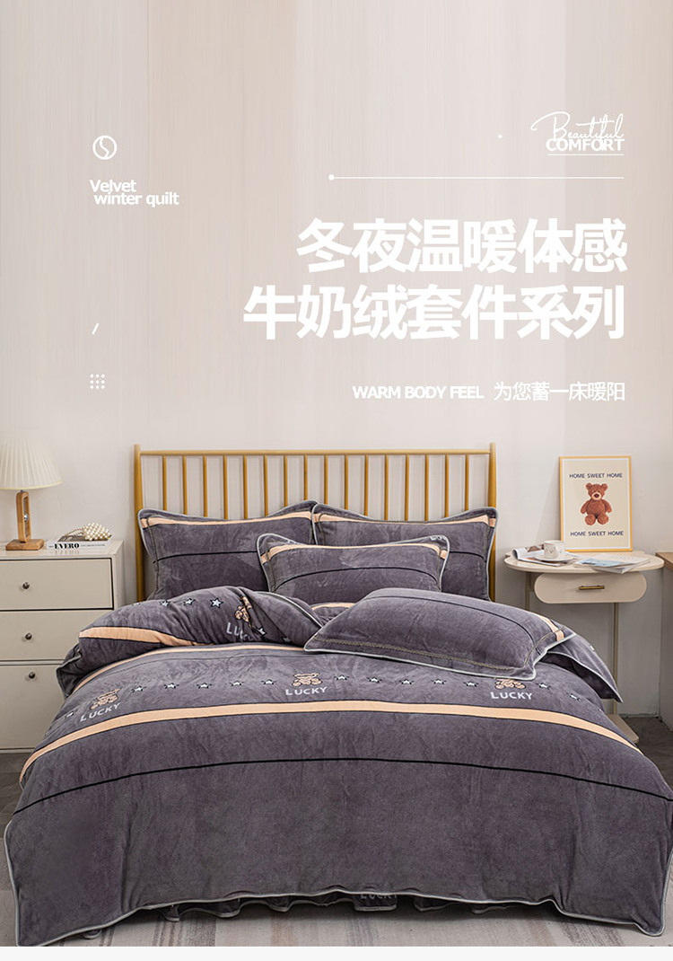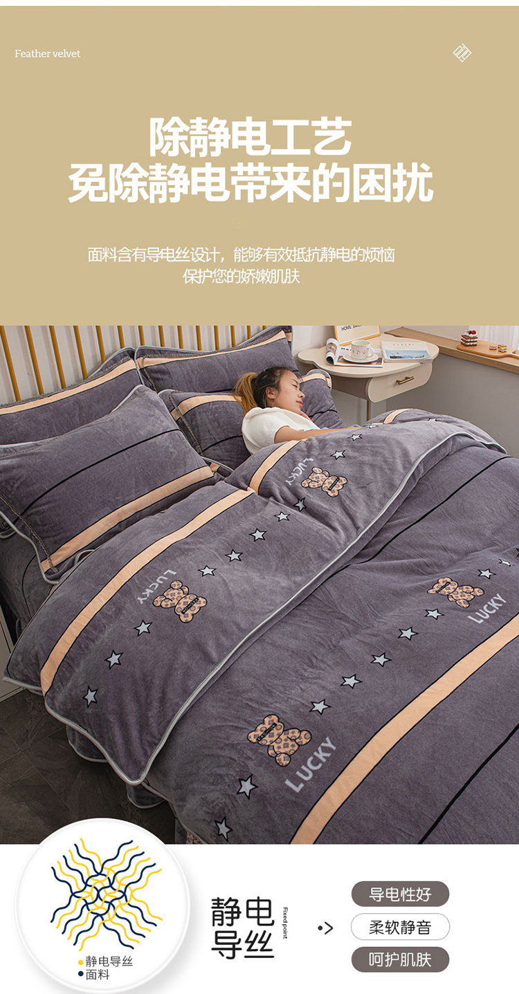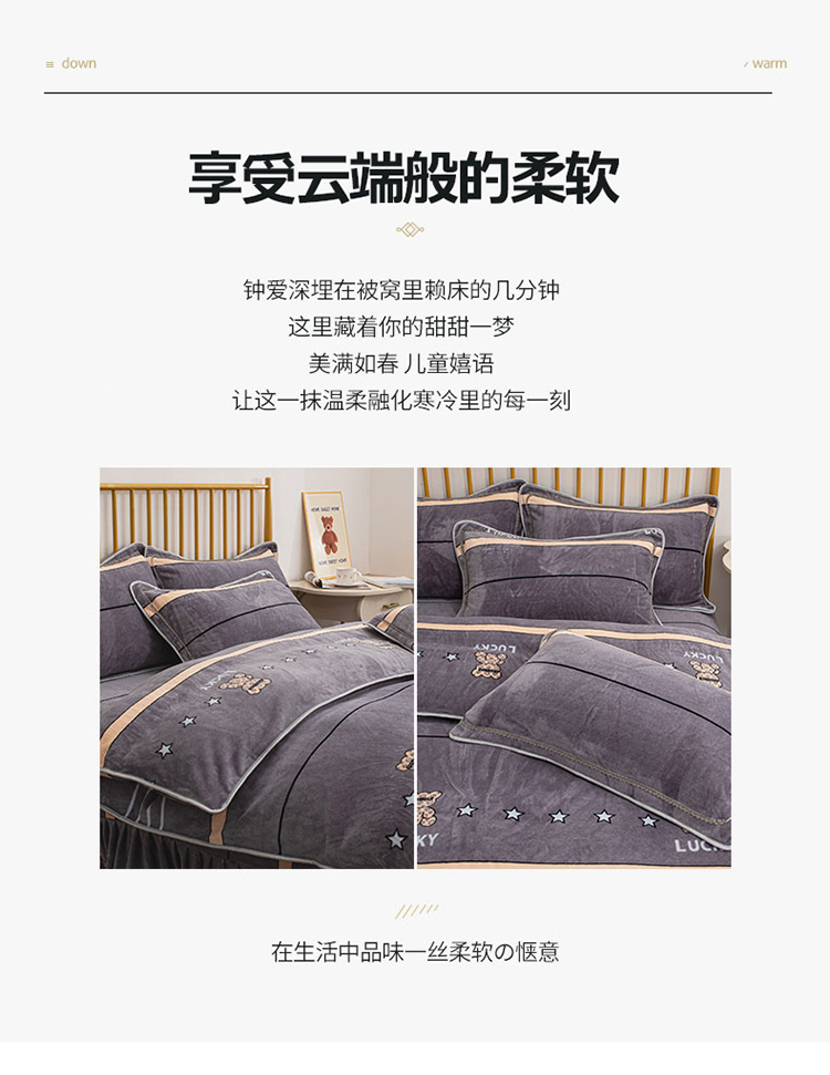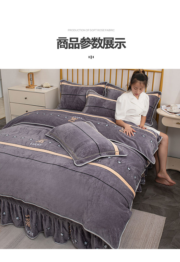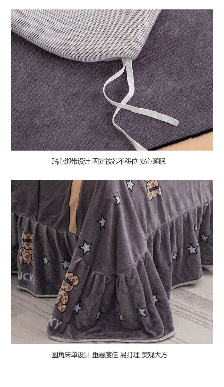 商品名称:登登家纺 加厚印花牛奶金貂法莱宝宝绒四件套 布偶小熊