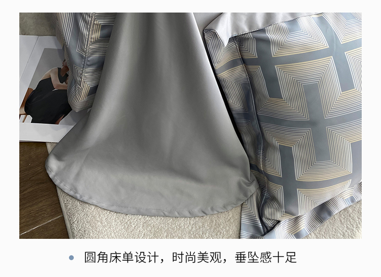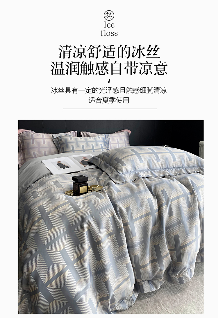 商品名称:优悦 2023新款冰丝印花四件套澜玉丛境 灰