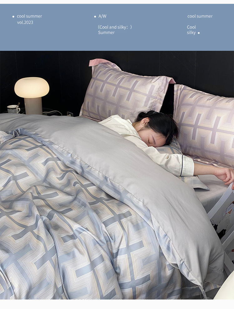 (总)优悦生活馆 2025新款顺滑冰丝夏被四件套-轻梦轻语,轻梦-绿,轻梦-香槟,轻梦-紫,轻语-绿,轻语-紫
