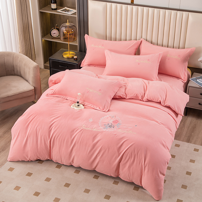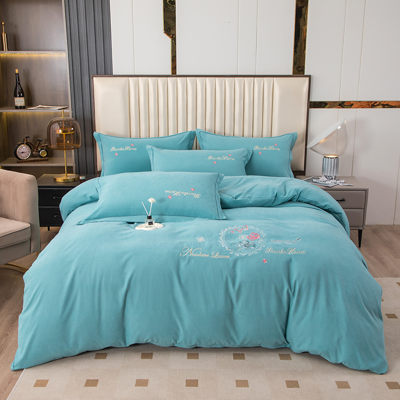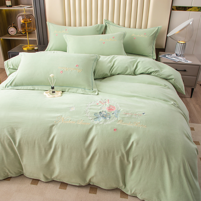 (总)优姿家纺 2025新款牛奶绒花边绣花床盖四件套,花漾时光-果绿,花漾时光-玖红色,花漾时光-米色,花漾时光-桃红色,花漾时光-天空兰,花漾时光-雾霾蓝