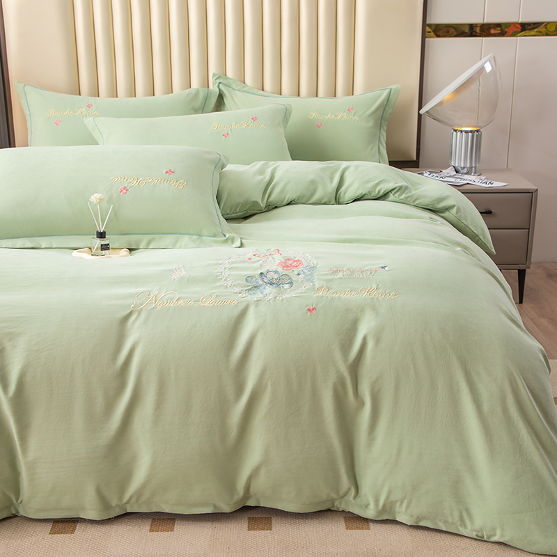 (总)优姿家纺 2026新款全棉拼接绣花四件套,繁花粉,繁花灰,繁花桔,繁花蓝,繁花绿,繁花紫