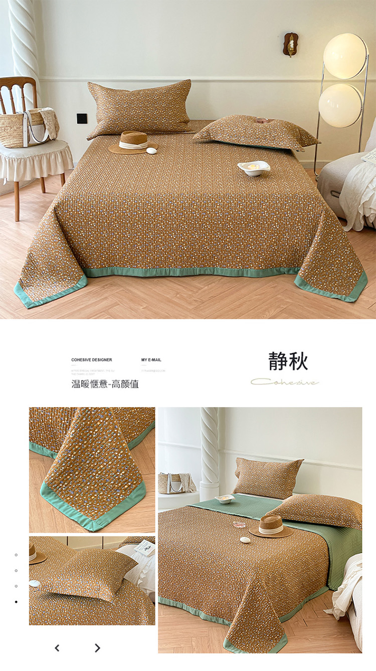 (总)2025新款50莱赛尔双面天丝床盖三件套,山茶花粉,山茶花蓝,山茶花白,山茶花黄