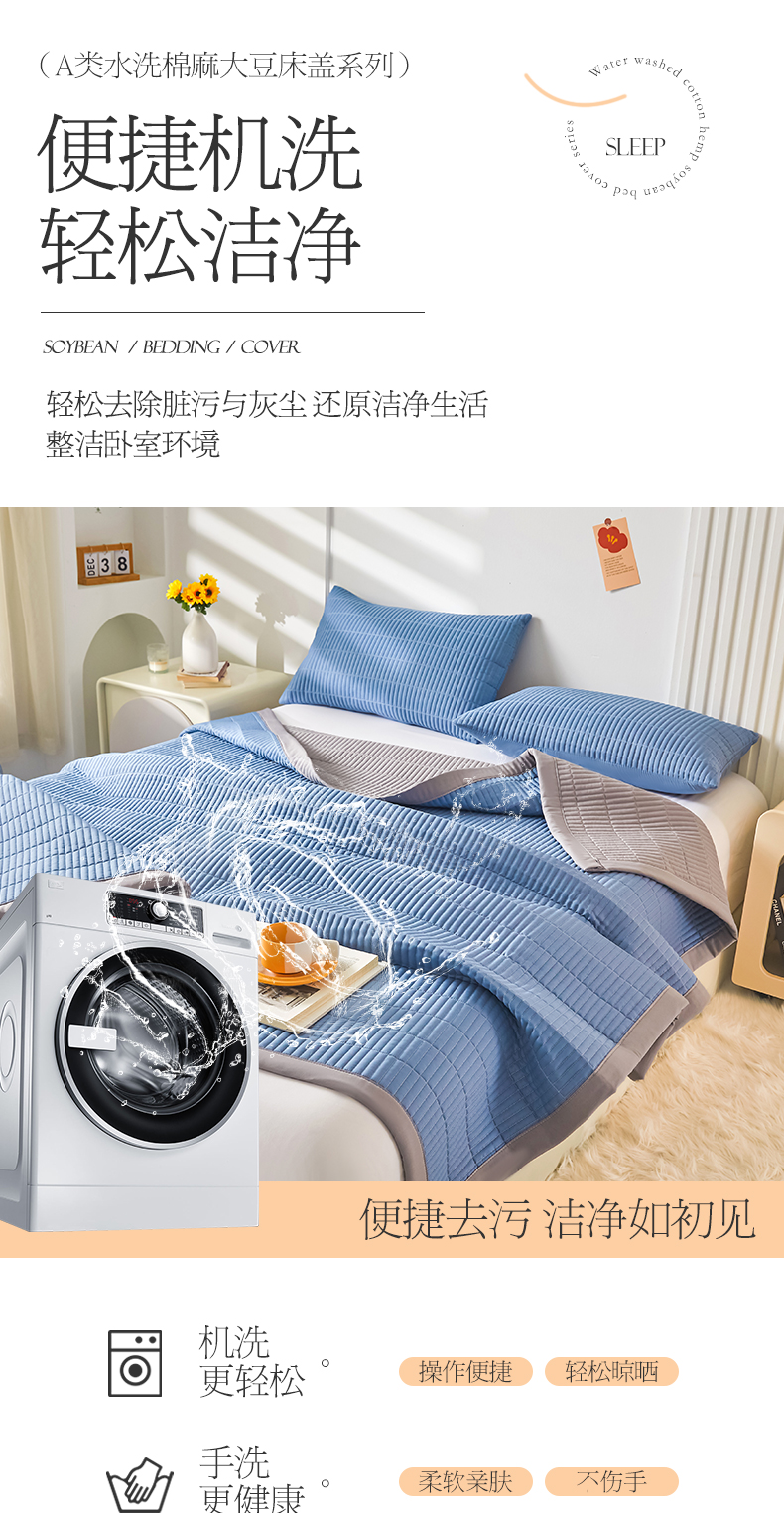 150*230cm【0.9-1.2床A类水洗棉麻床盖】