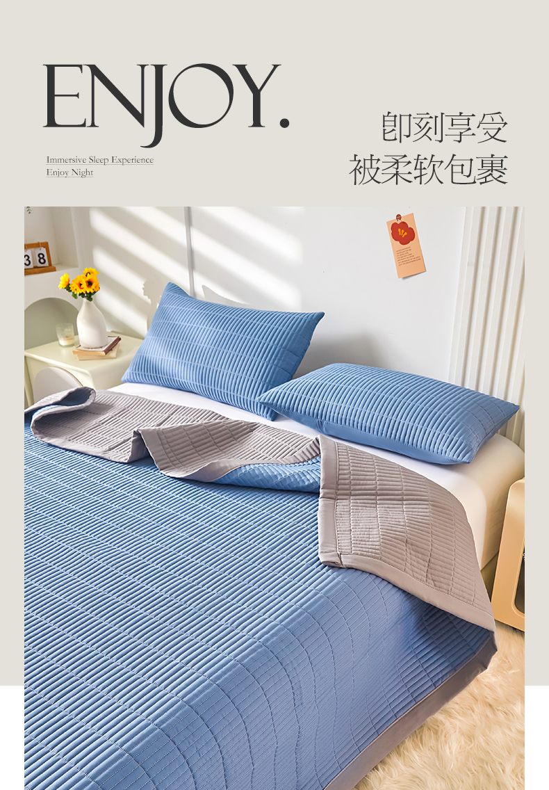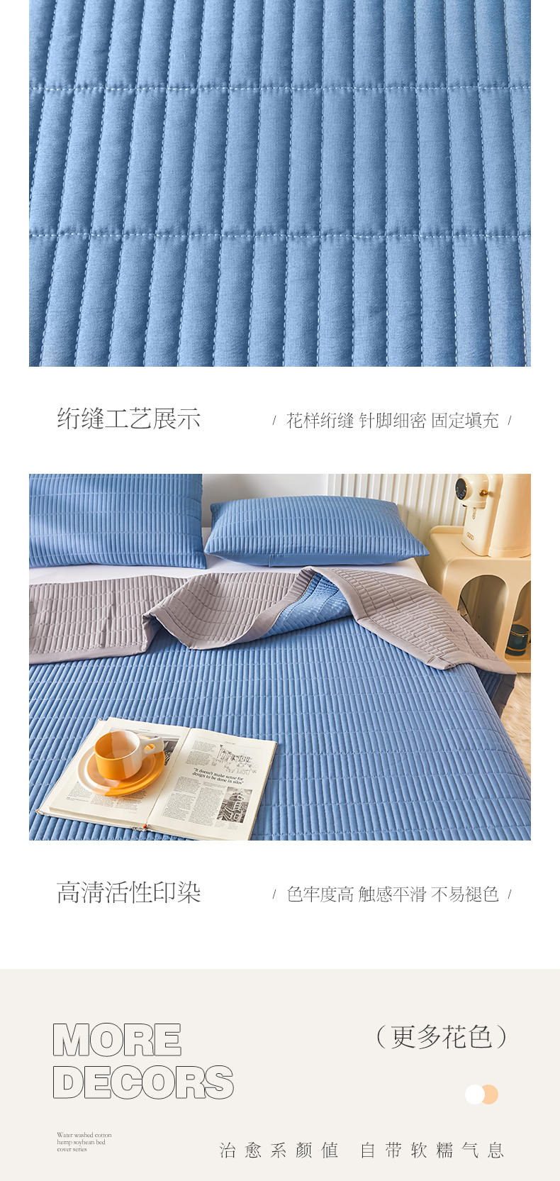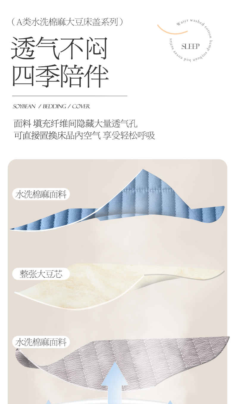 圣比熊水洗棉麻床盖大豆纤维夹棉加厚宿舍铺盖两用床单床裙保护垫 宾利兰
