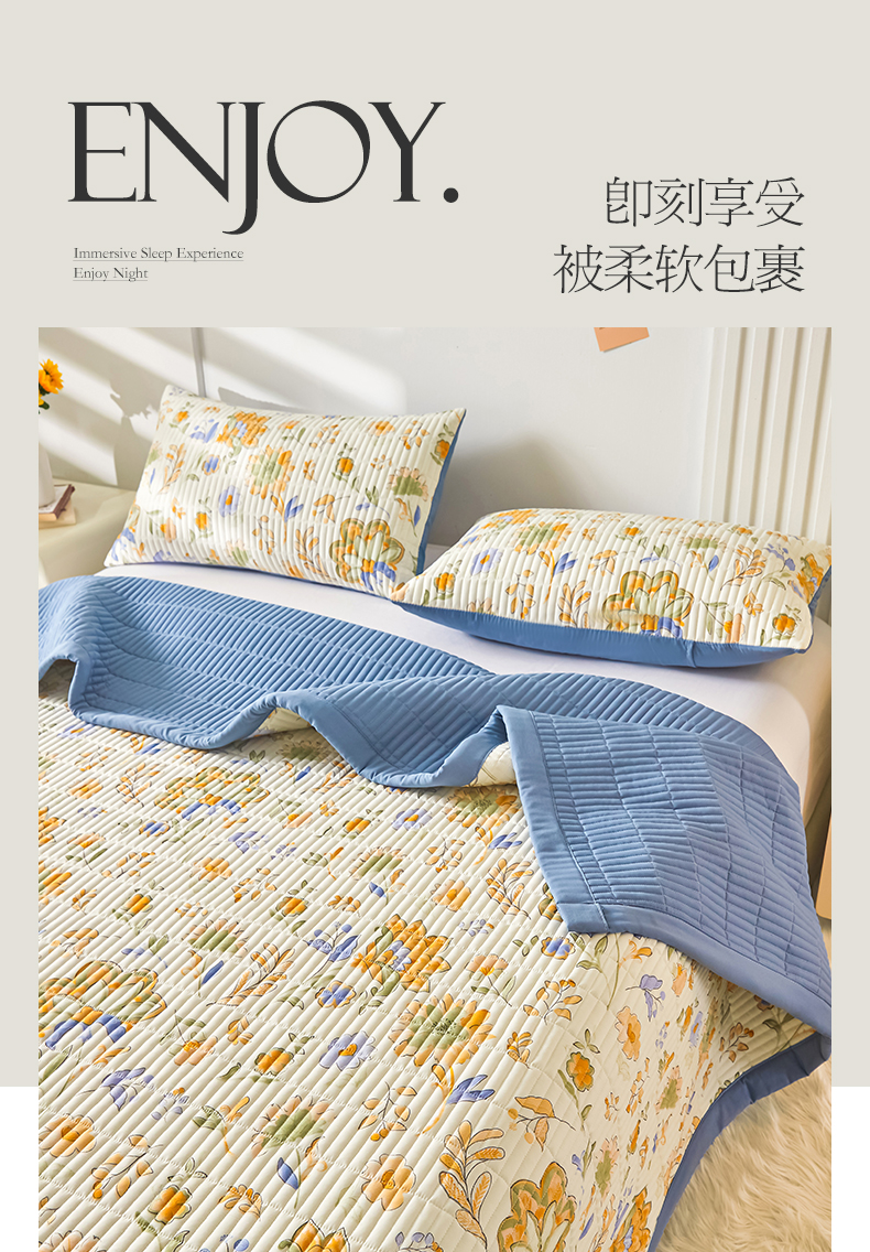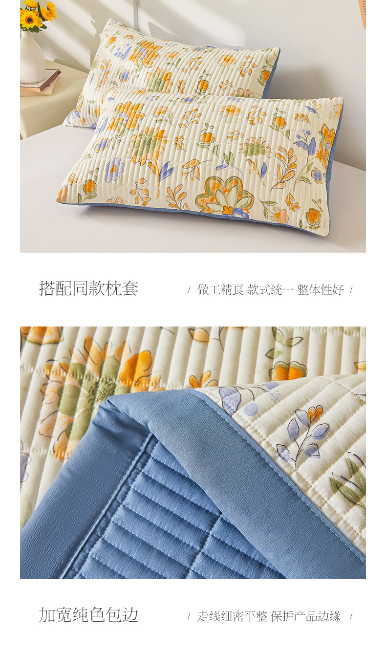圣比熊水洗棉麻床盖大豆纤维夹棉加厚宿舍铺盖两用床单床裙保护垫 太阳花