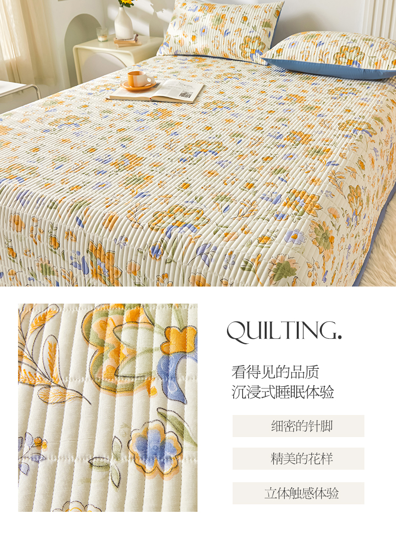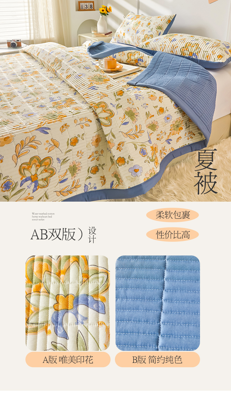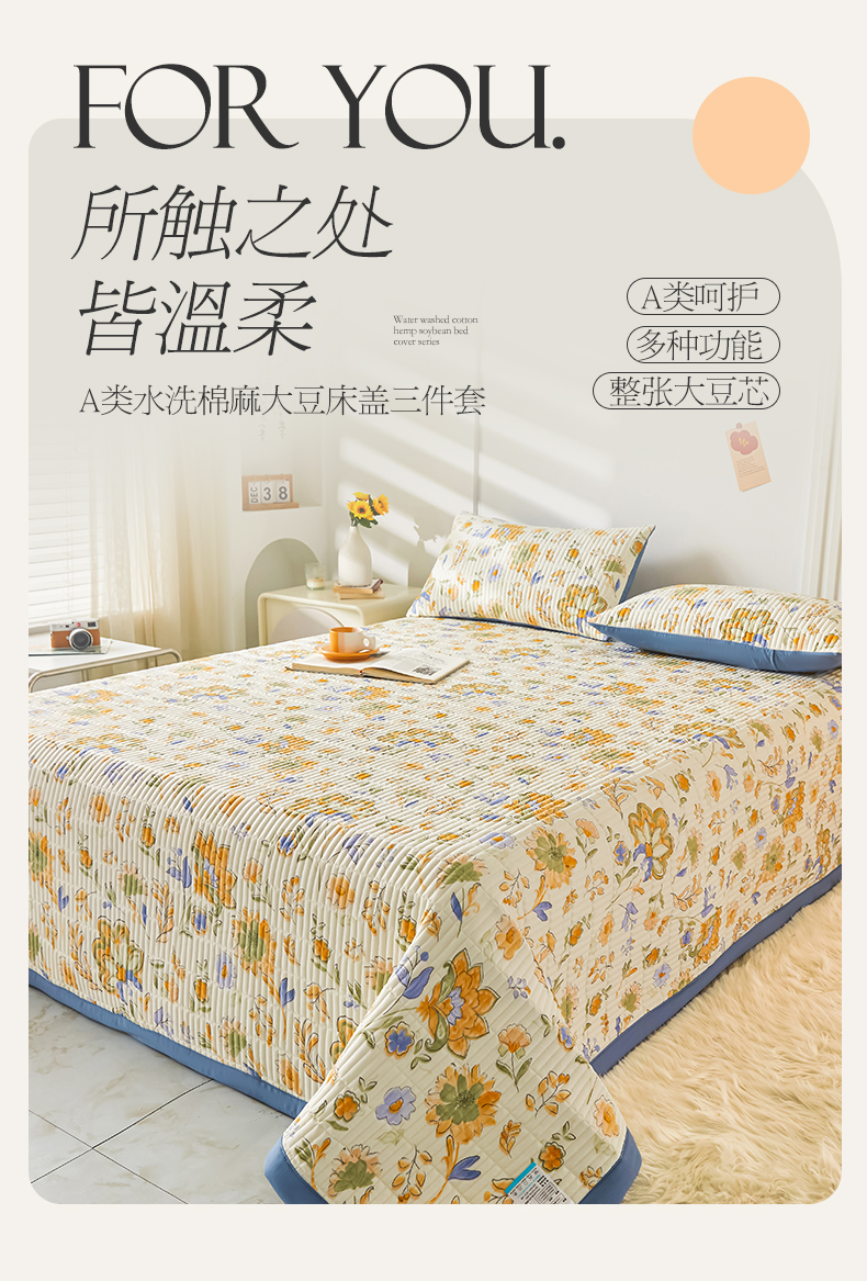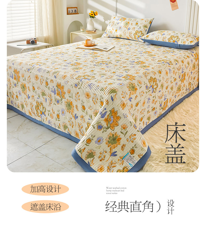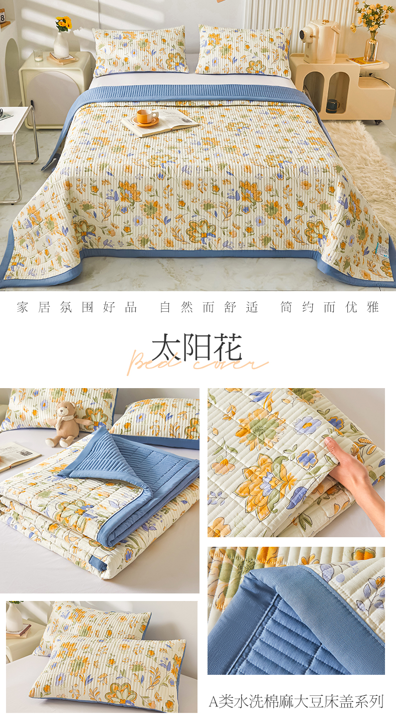 商品名称:圣比熊水洗棉麻床盖大豆纤维夹棉加厚宿舍铺盖两用床单床裙保护垫 太阳花
