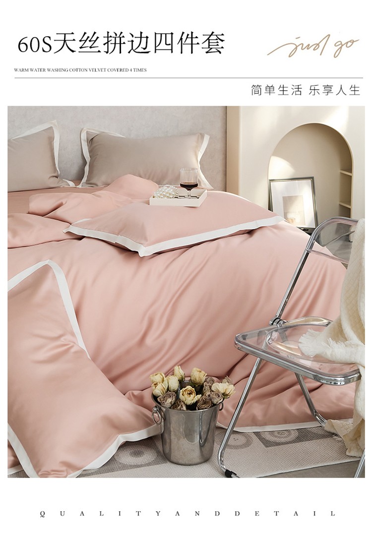 当前位置: 91家纺网 > 商品网购 > 床品套件 > 四件套 > 莱赛尔四件套 > 2023新款春夏60天丝四件套-半夏系列 半夏-海棠粉