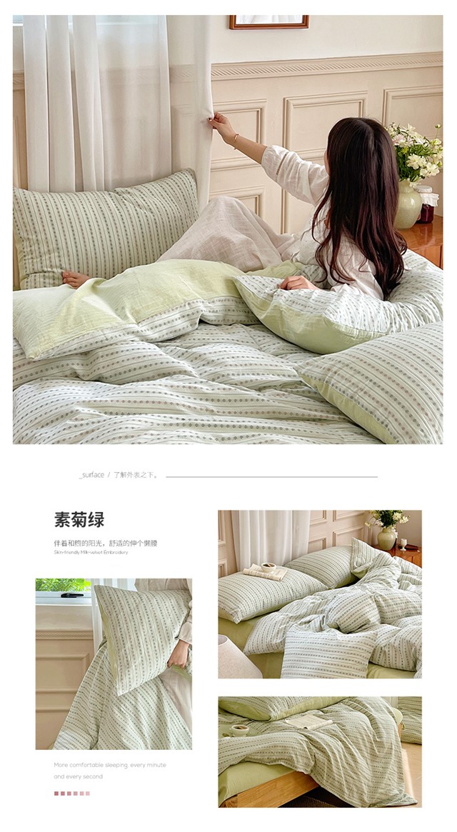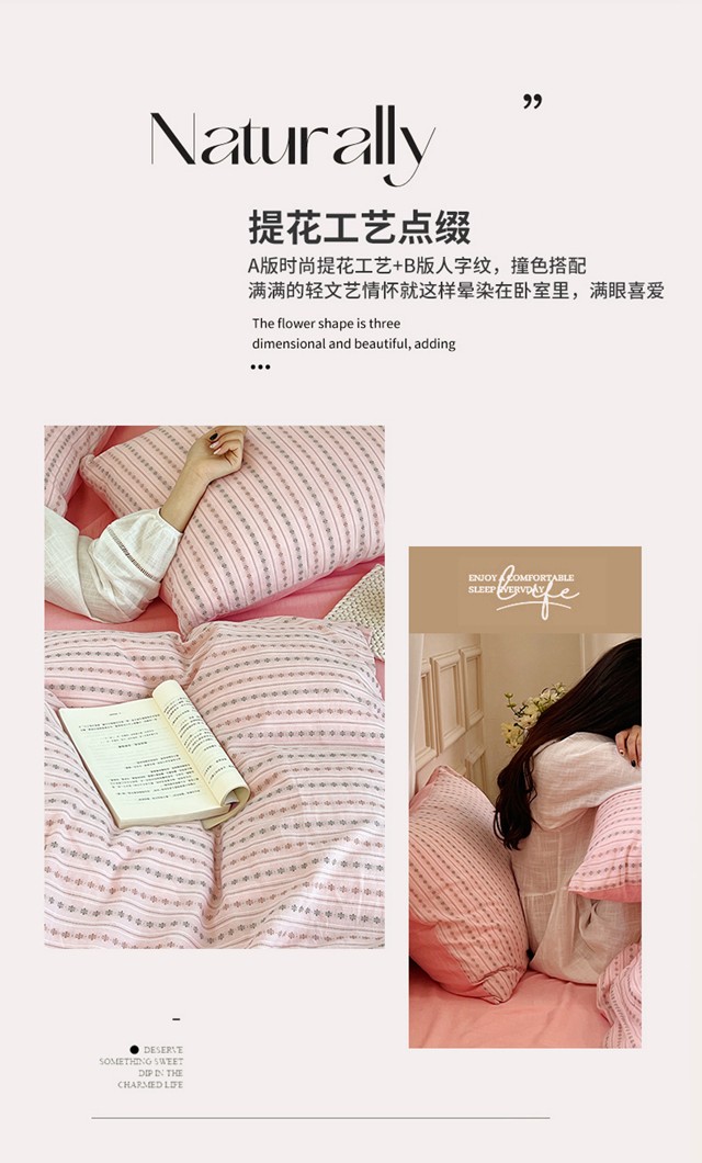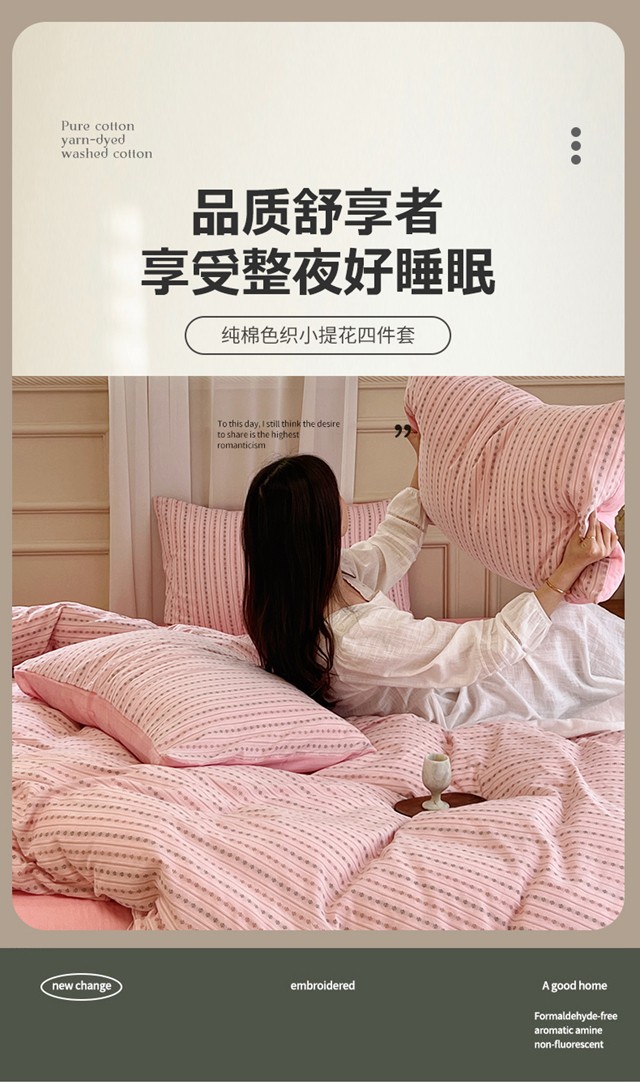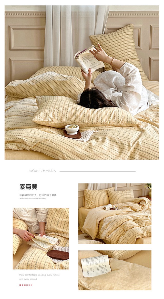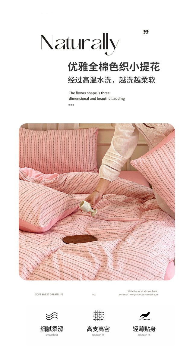 当前位置: 91家纺网 > 商品网购 > 床品套件 > 四件套 > 全棉普通四件套 > (总)艾咪 新款全棉色织水洗棉小提花四件套-素菊系列