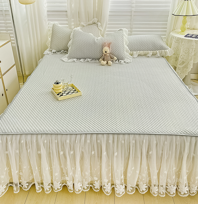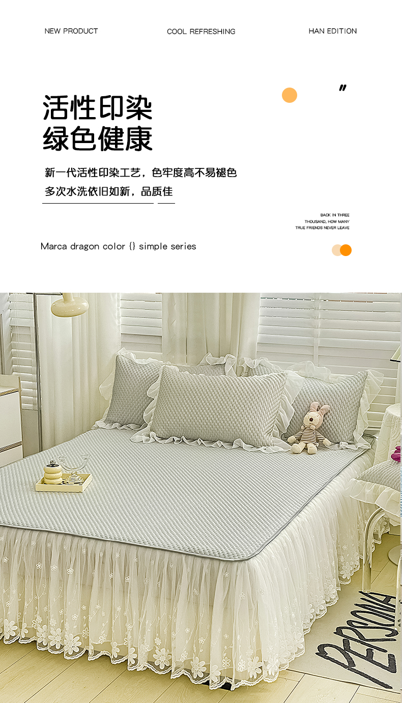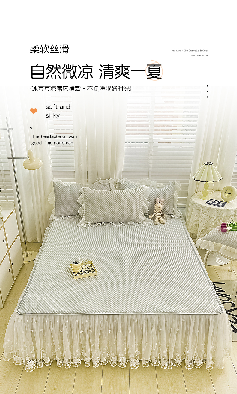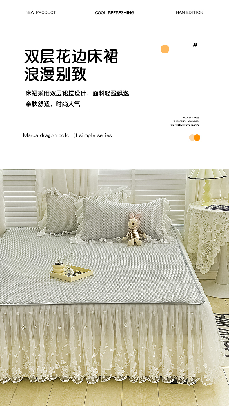 商品名称:罗艺轩 2024新款抗菌高克重双层复合床裙款豆豆席三件套 倾城雅韵 高级灰