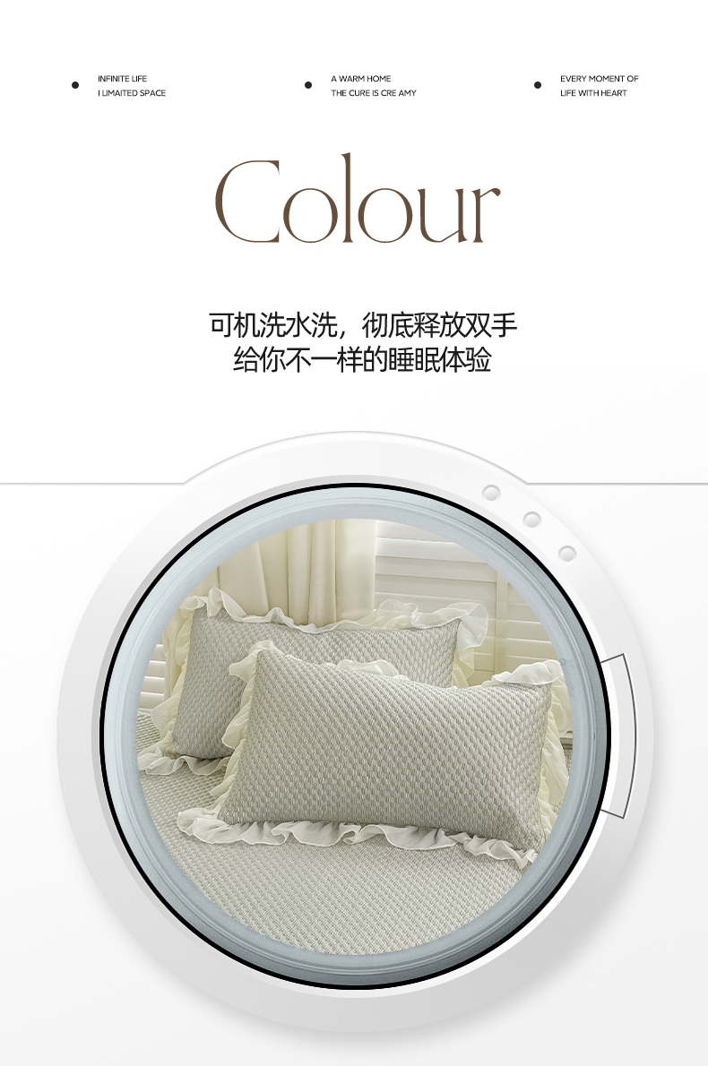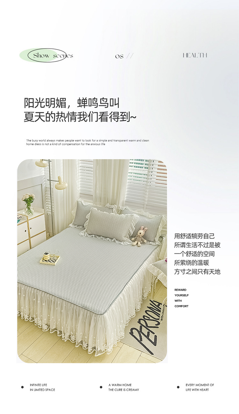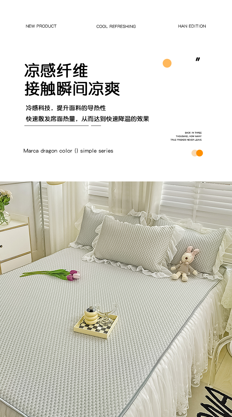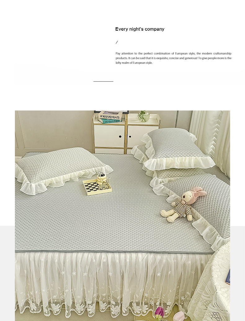 商品名称:罗艺轩 2024新款抗菌高克重双层复合床裙款豆豆席三件套 倾城雅韵 高级灰