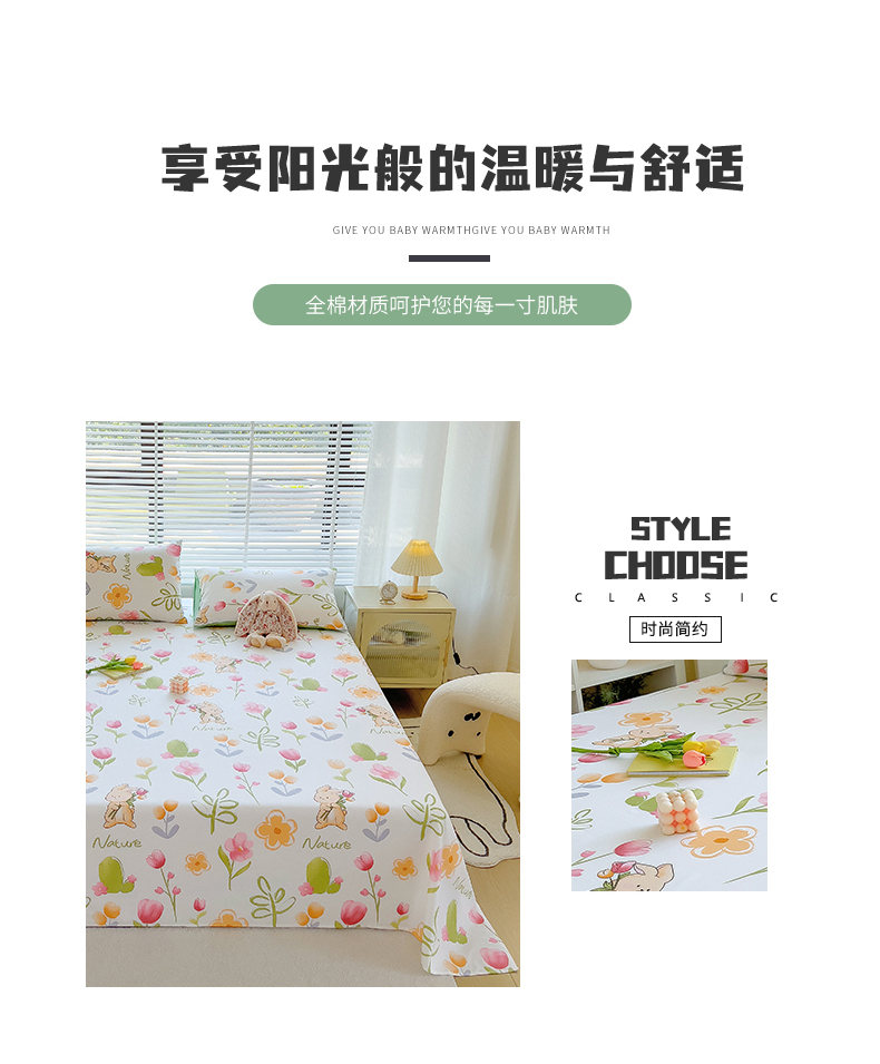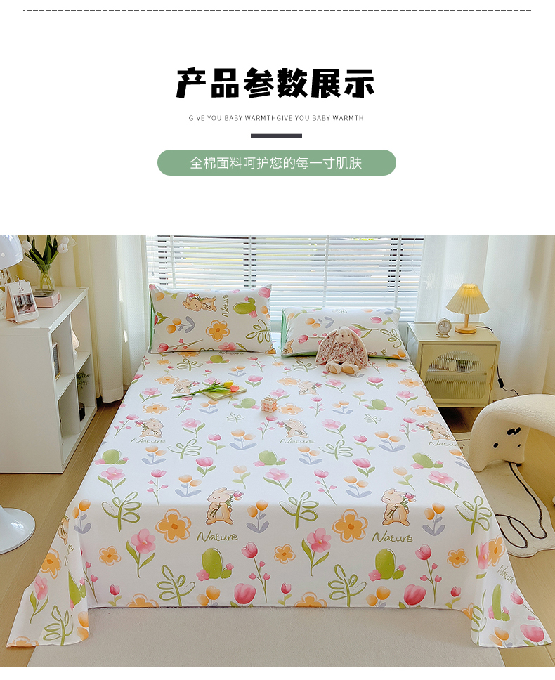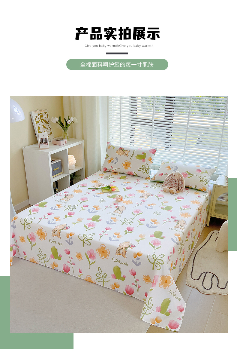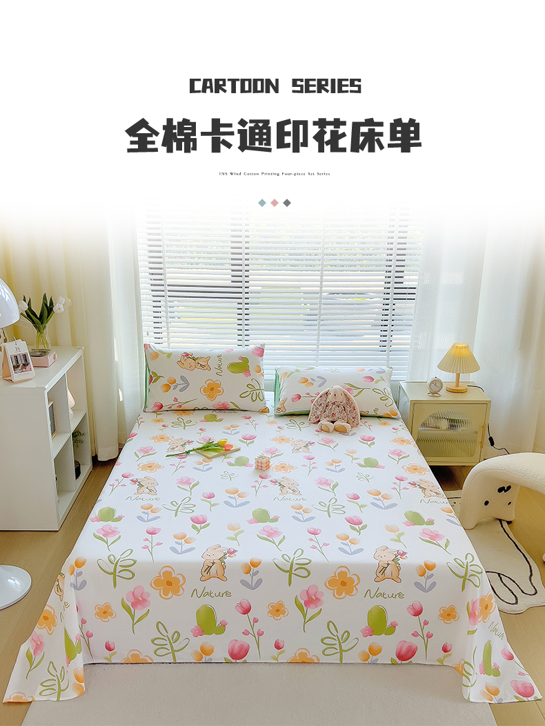 • 91家纺网 家纺一手货源 找家纺 芃成家纺 2023新款全棉13070单床单 小园丁