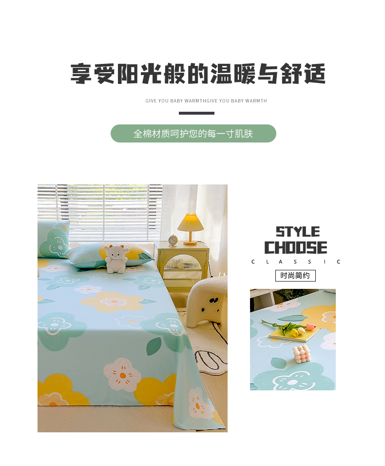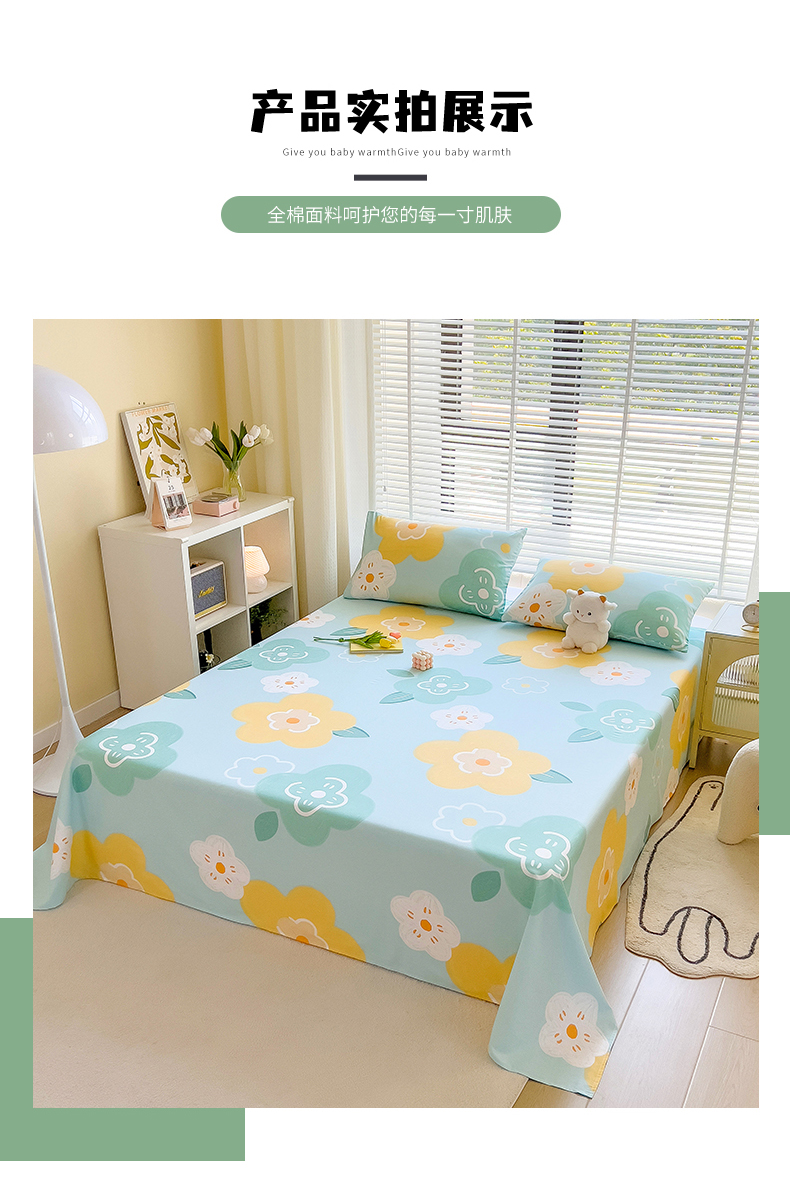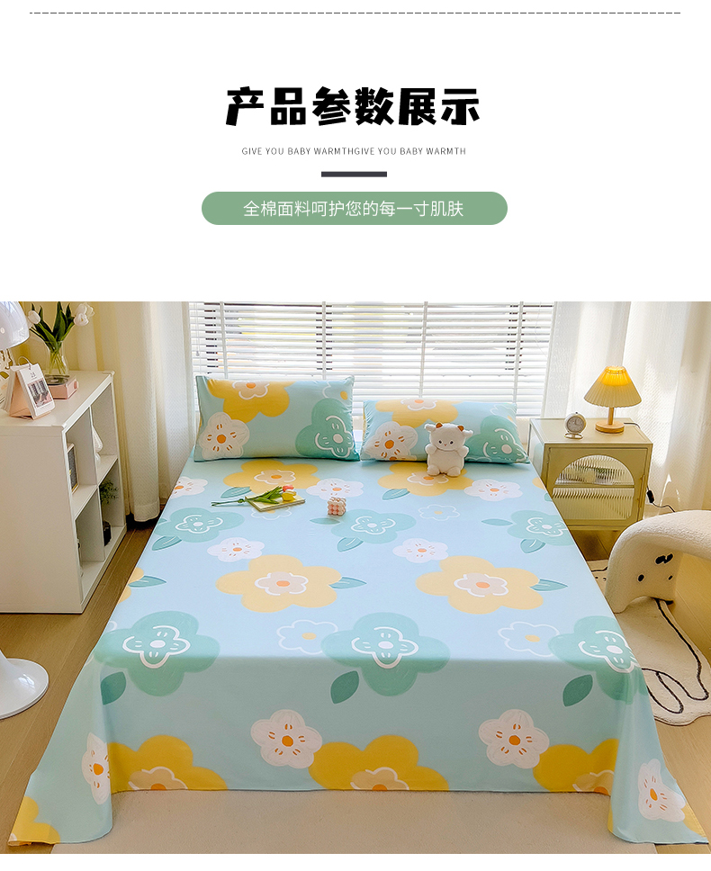 • 91家纺网 家纺一手货源 找家纺 芃成家纺 2023新款全棉13070单床单 春天里 蓝