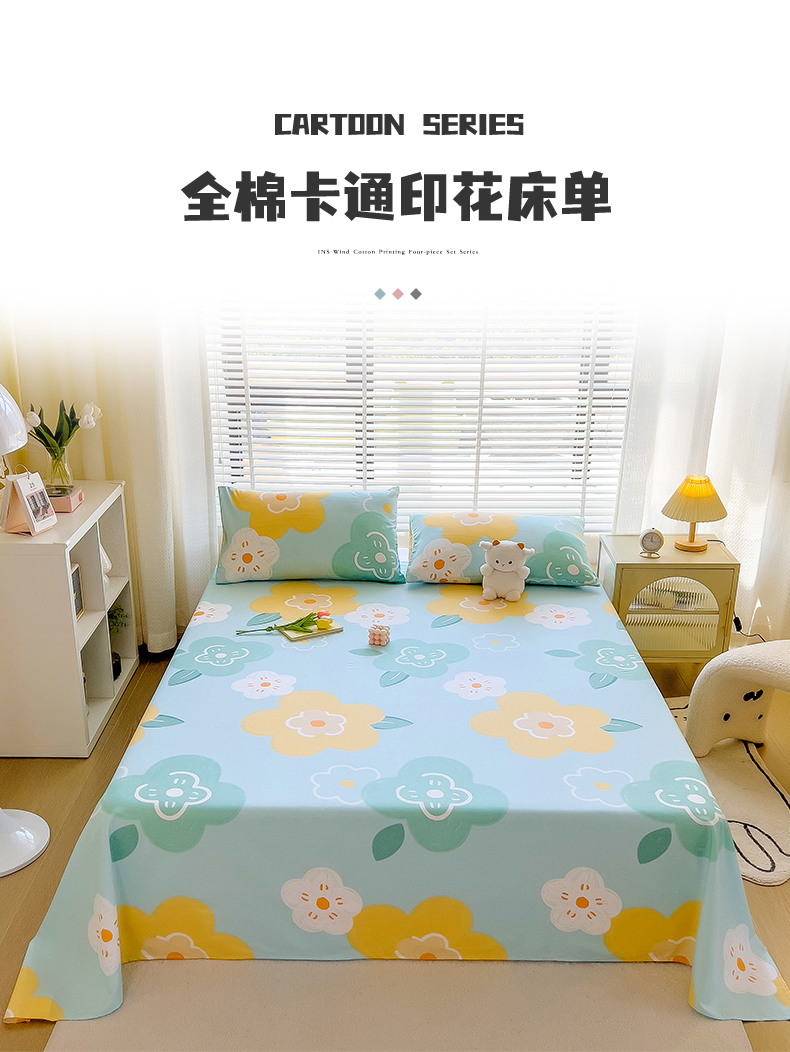 芃成家纺 2023新款全棉13070单床单 春天里 蓝