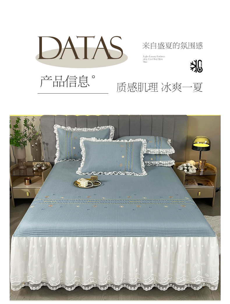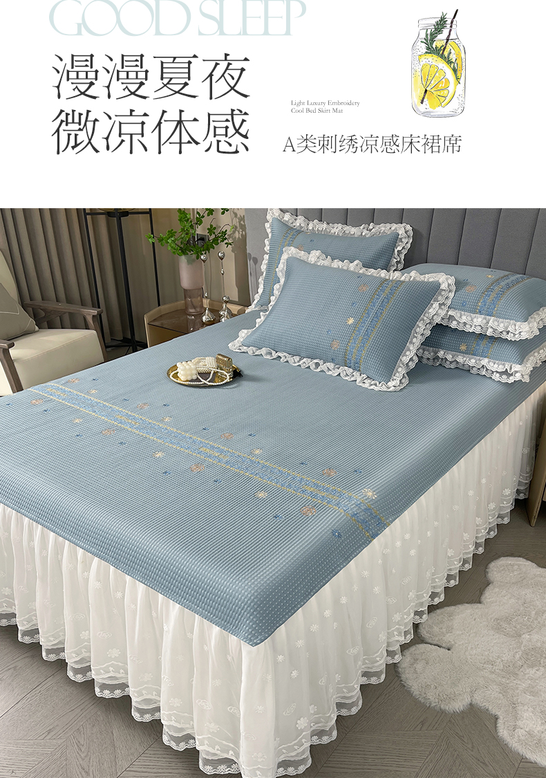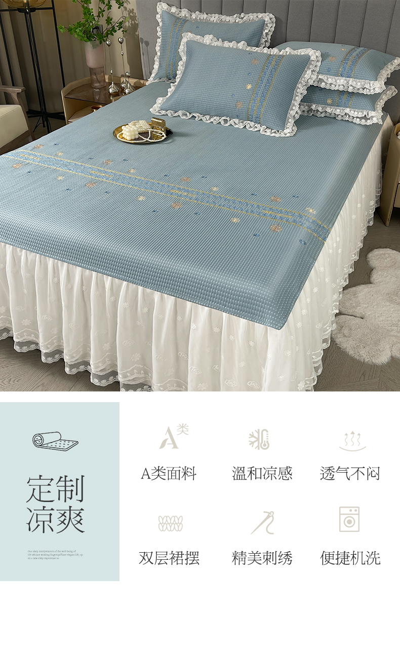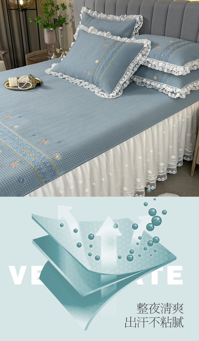 宜凡家纺2024新款A类蜂巢冰柠凉席床裙款三件套 简爱 雾兰