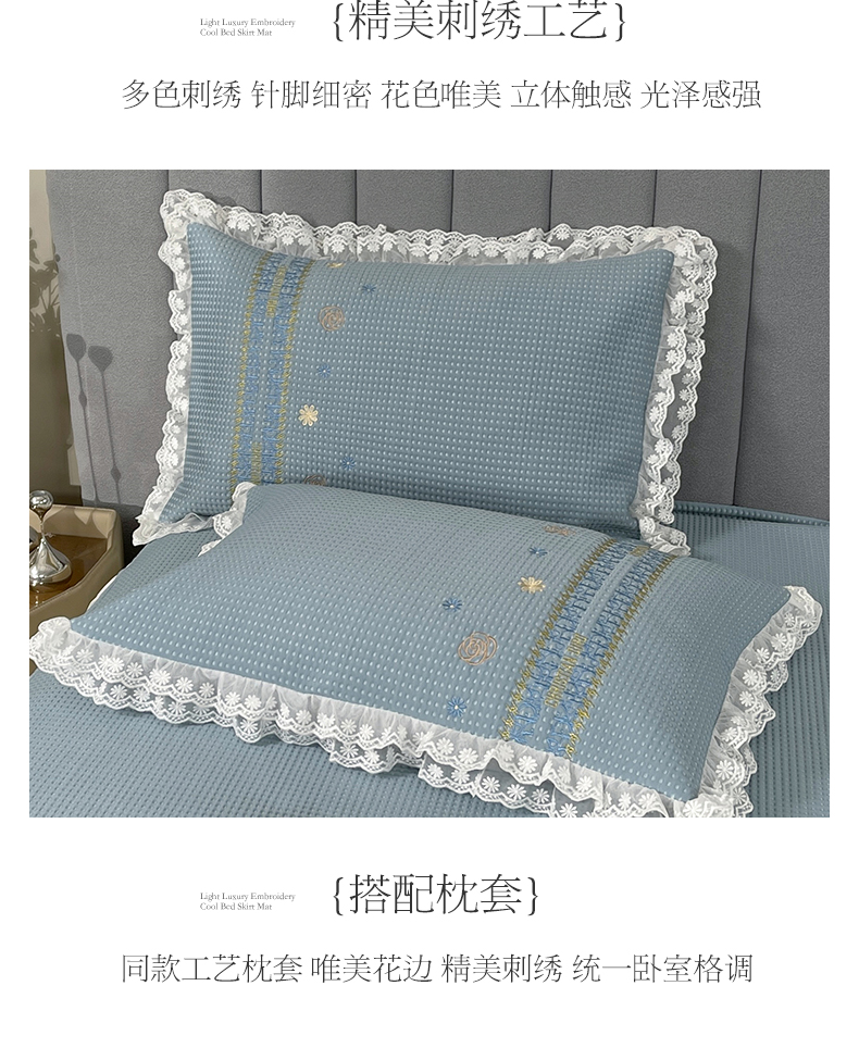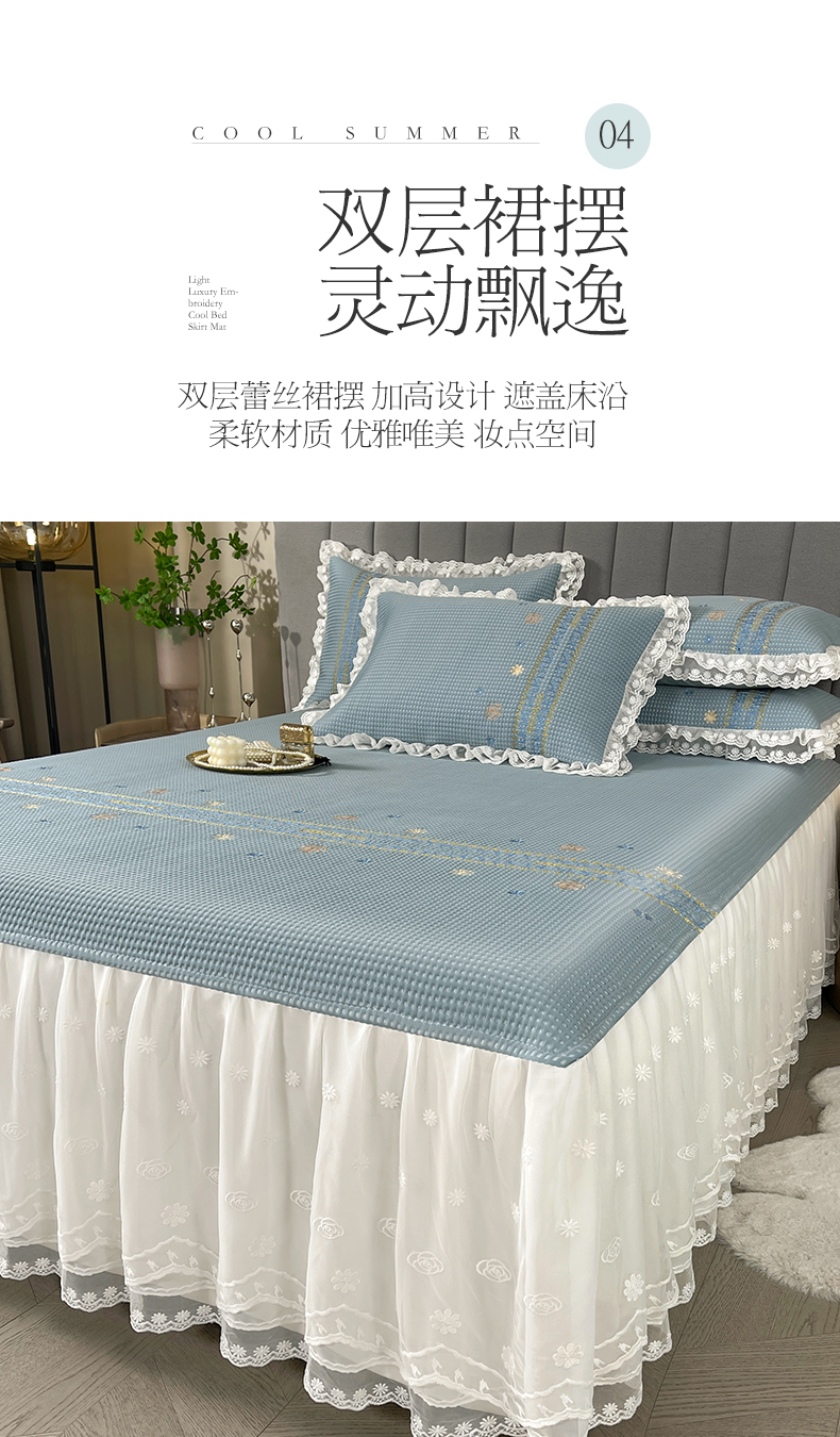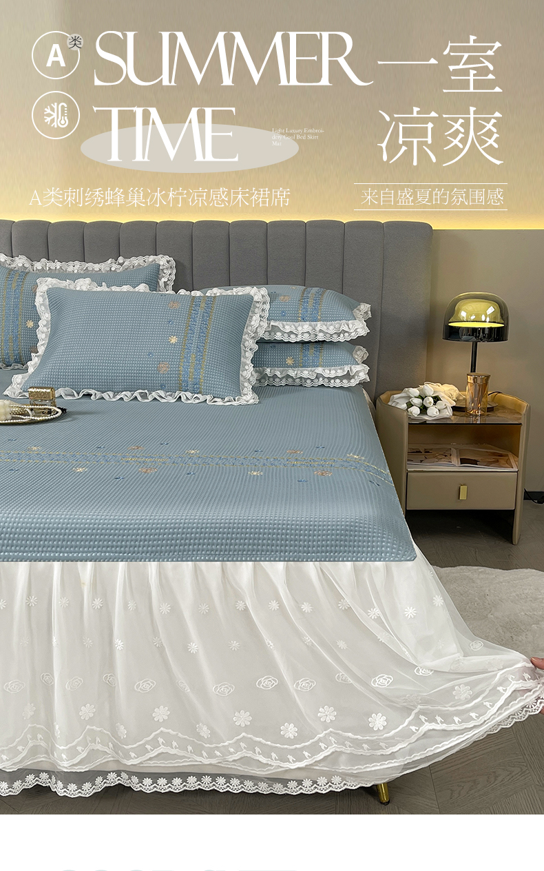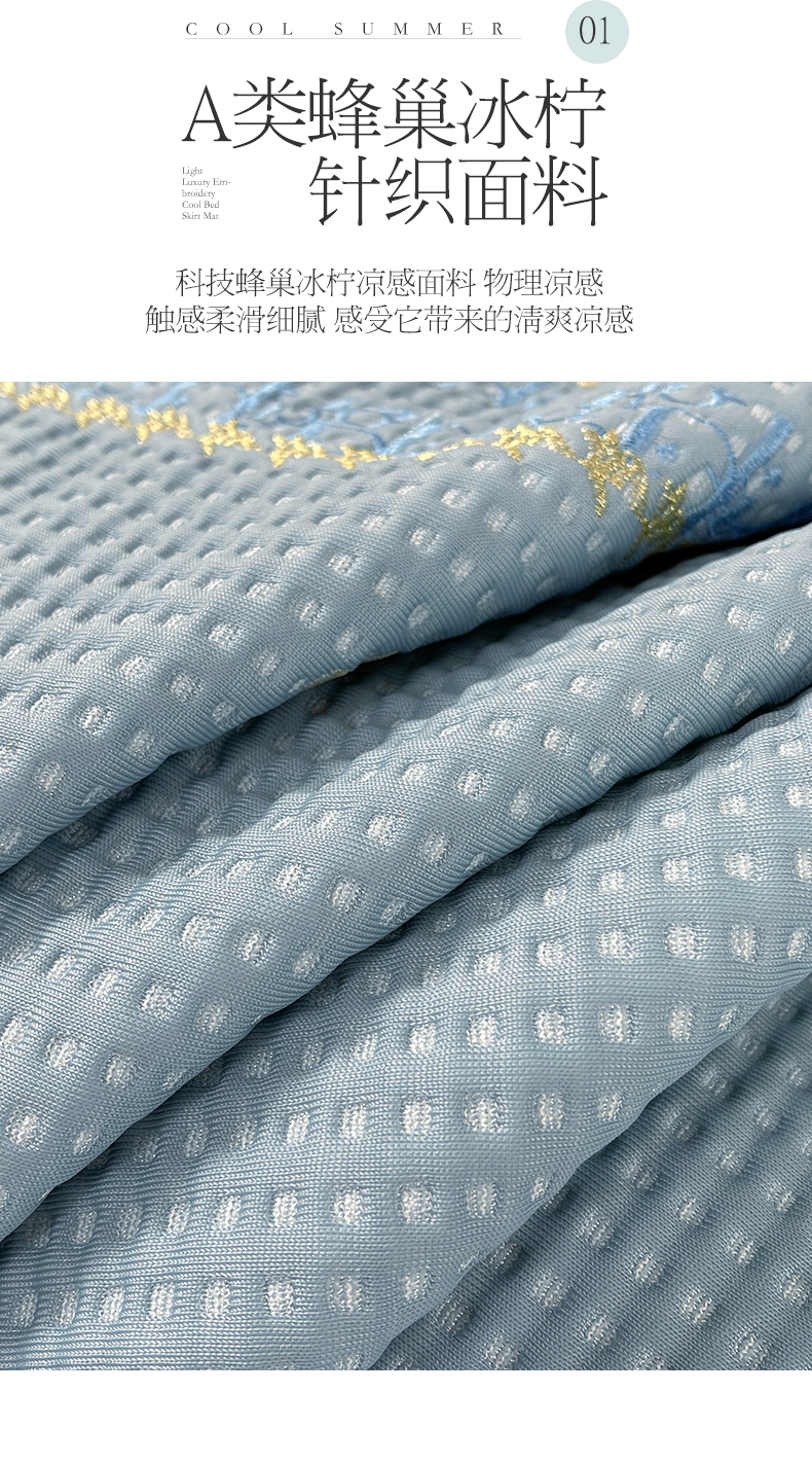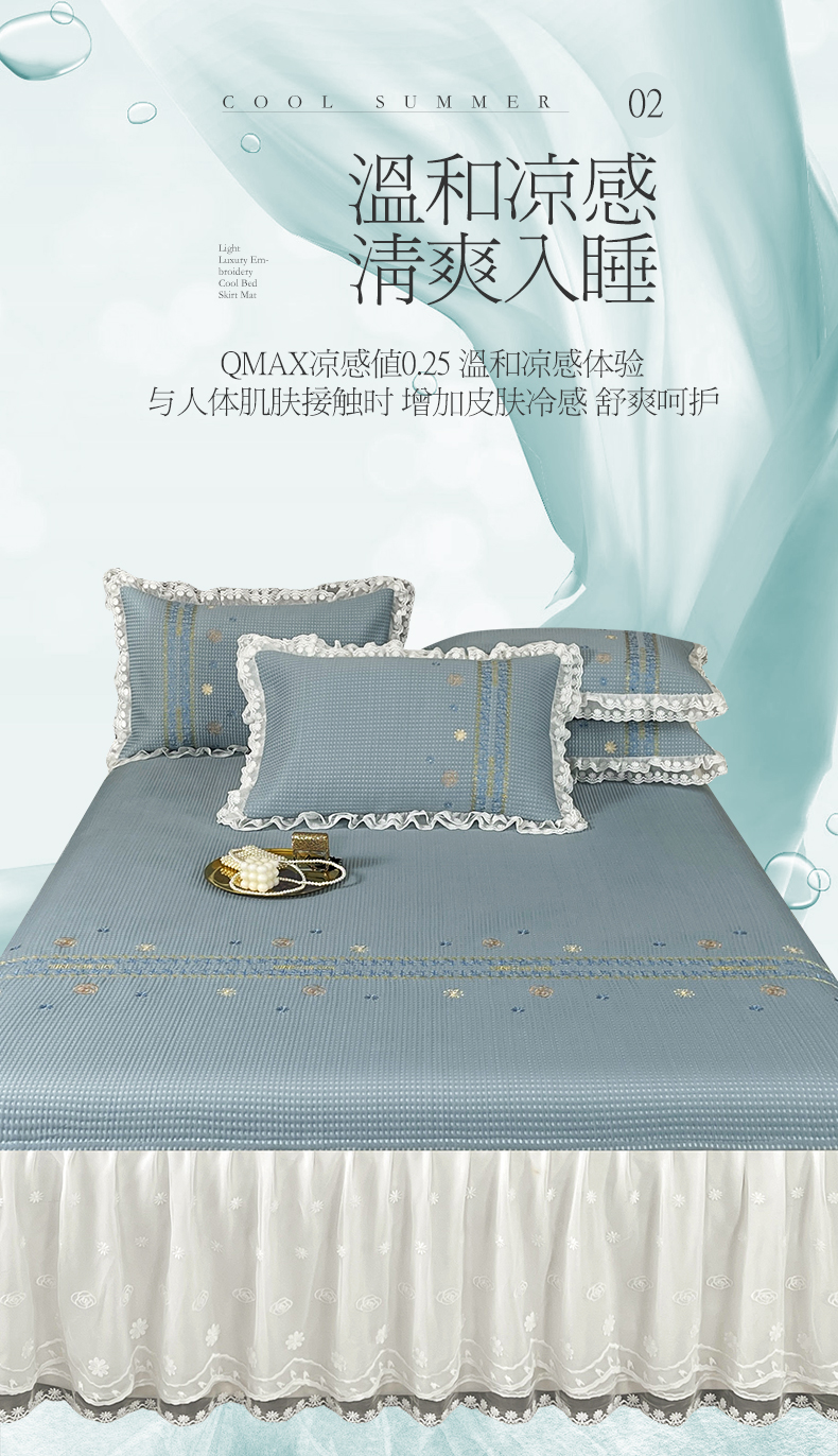 宜凡家纺2024新款A类蜂巢冰柠凉席床裙款三件套 简爱 雾兰