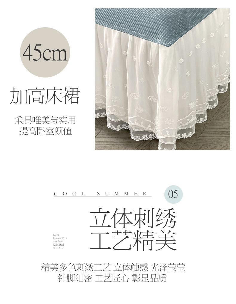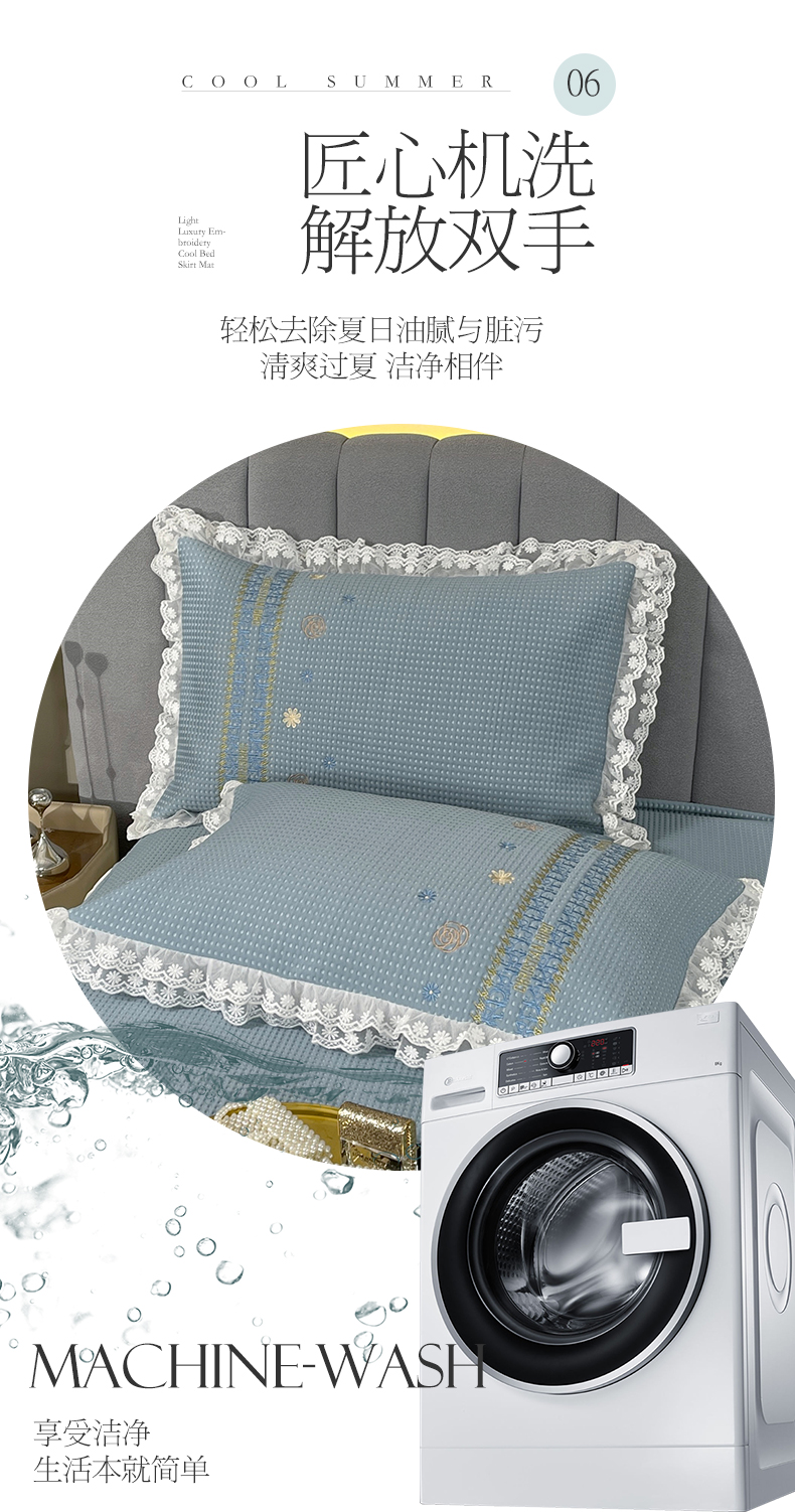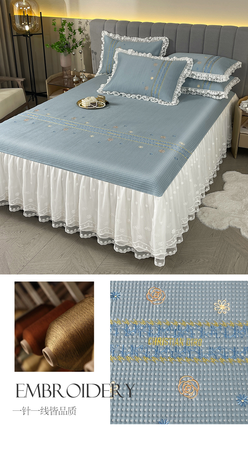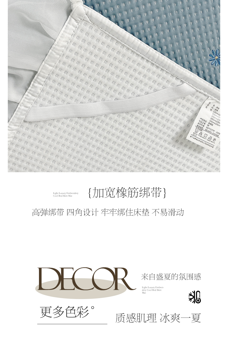 宜凡家纺2024新款A类蜂巢冰柠凉席床裙款三件套 简爱 雾兰