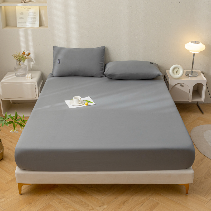 米瑞娜2024新款水洗棉麻双拼纯色单床笠 奶茶