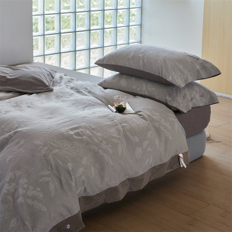 当前位置: 91家纺网 > 商品网购 > 床品套件 > 四件套 > 全棉普通四件套 > 安莱生活 2023新款双层纱大提花高奢工艺款叶影系列四件套 叶影-浅灰