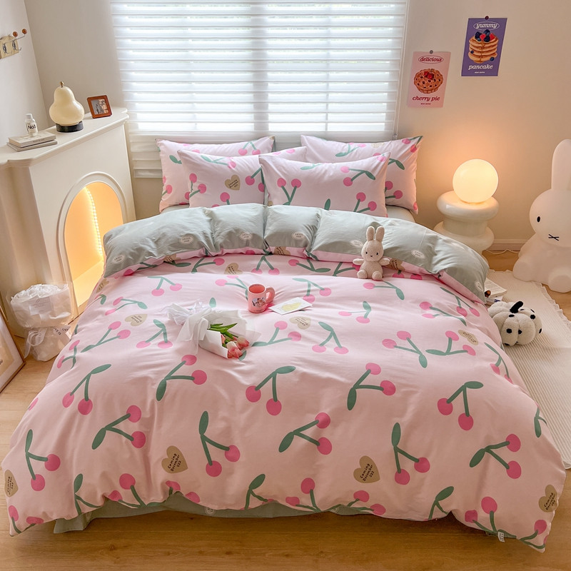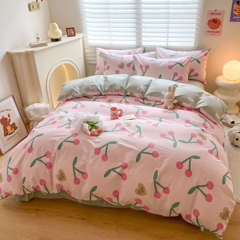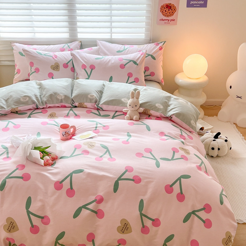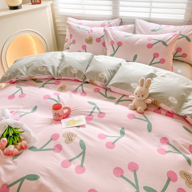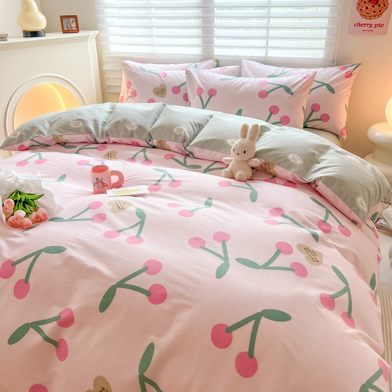 商品名称:顾里家纺 2023新款40支13372全棉四季款韩系氛围四件套 粉雾樱桃
