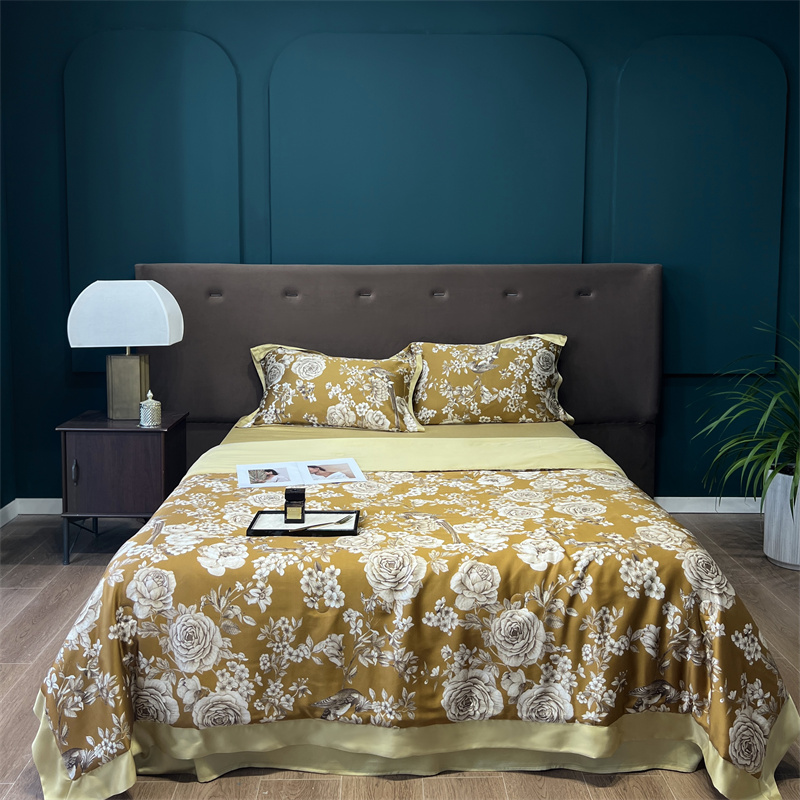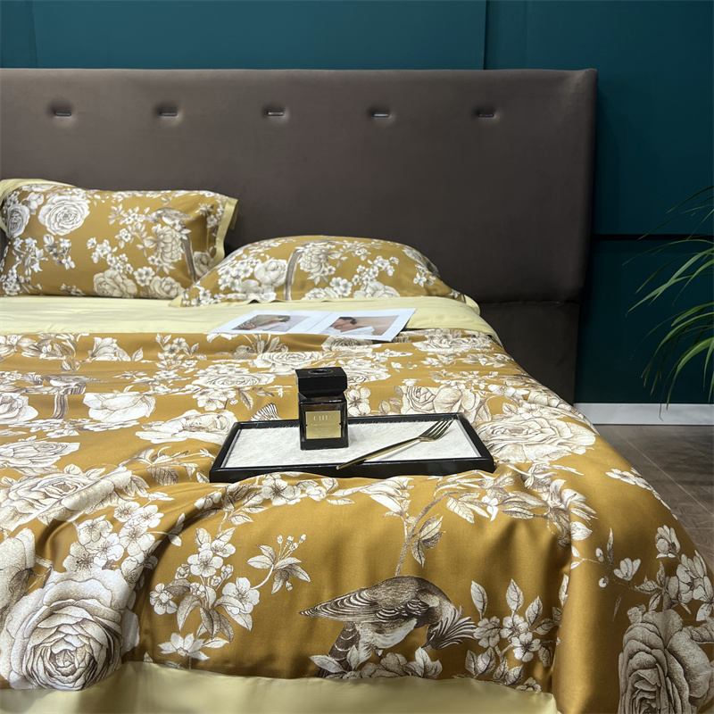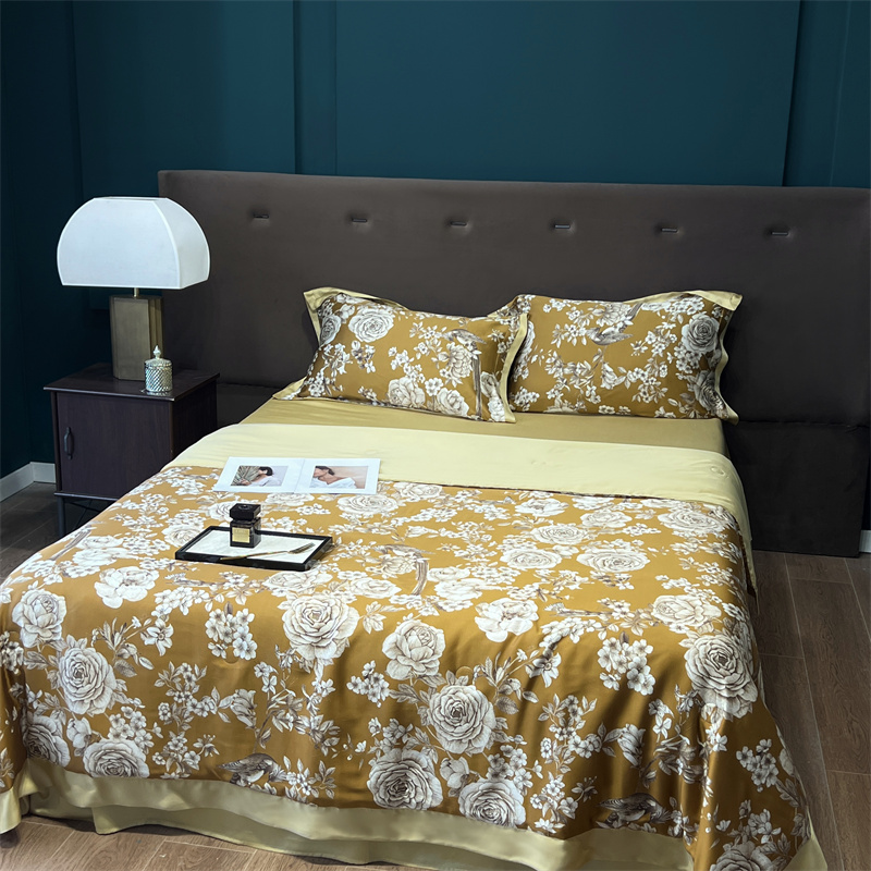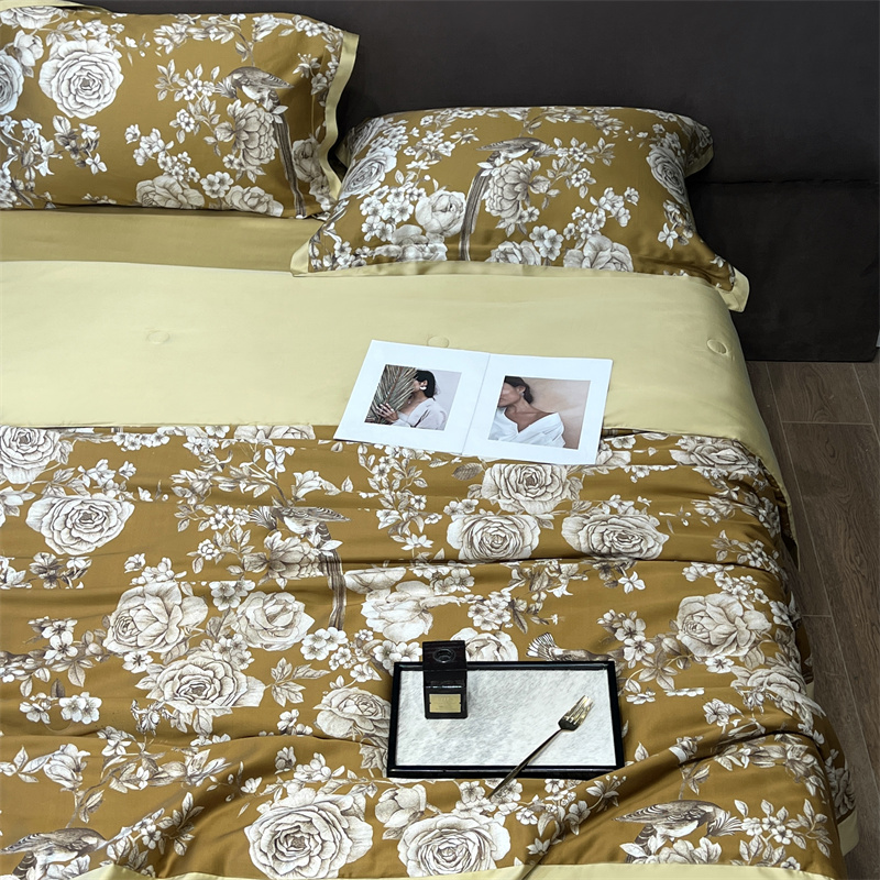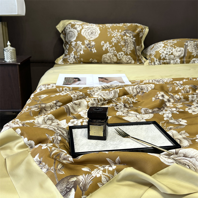 朵美2023新款100支兰精天丝数码印花系列—夏被四件套 曼缇(金)