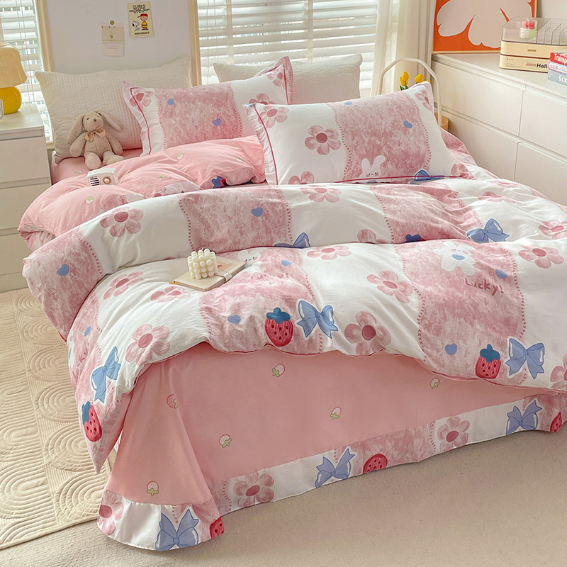 2024新款13372纯棉大版印+绣小清新款四件套 草莓之恋,草莓之恋
