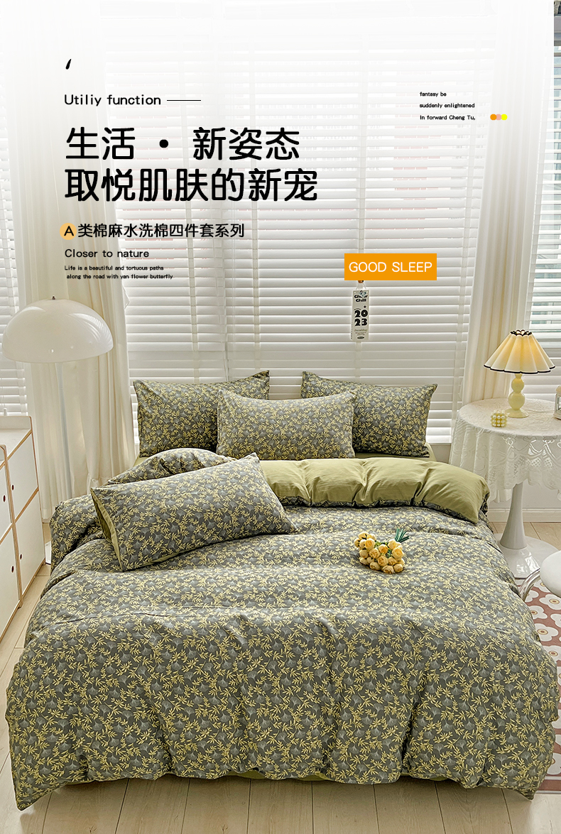 当前位置: 91家纺网 > 商品网购 > 床品套件 > 四件套 > 水洗棉四件套 > 优选 2025直播爆款法式风双层纱棉麻水洗棉四件套 曲意风华