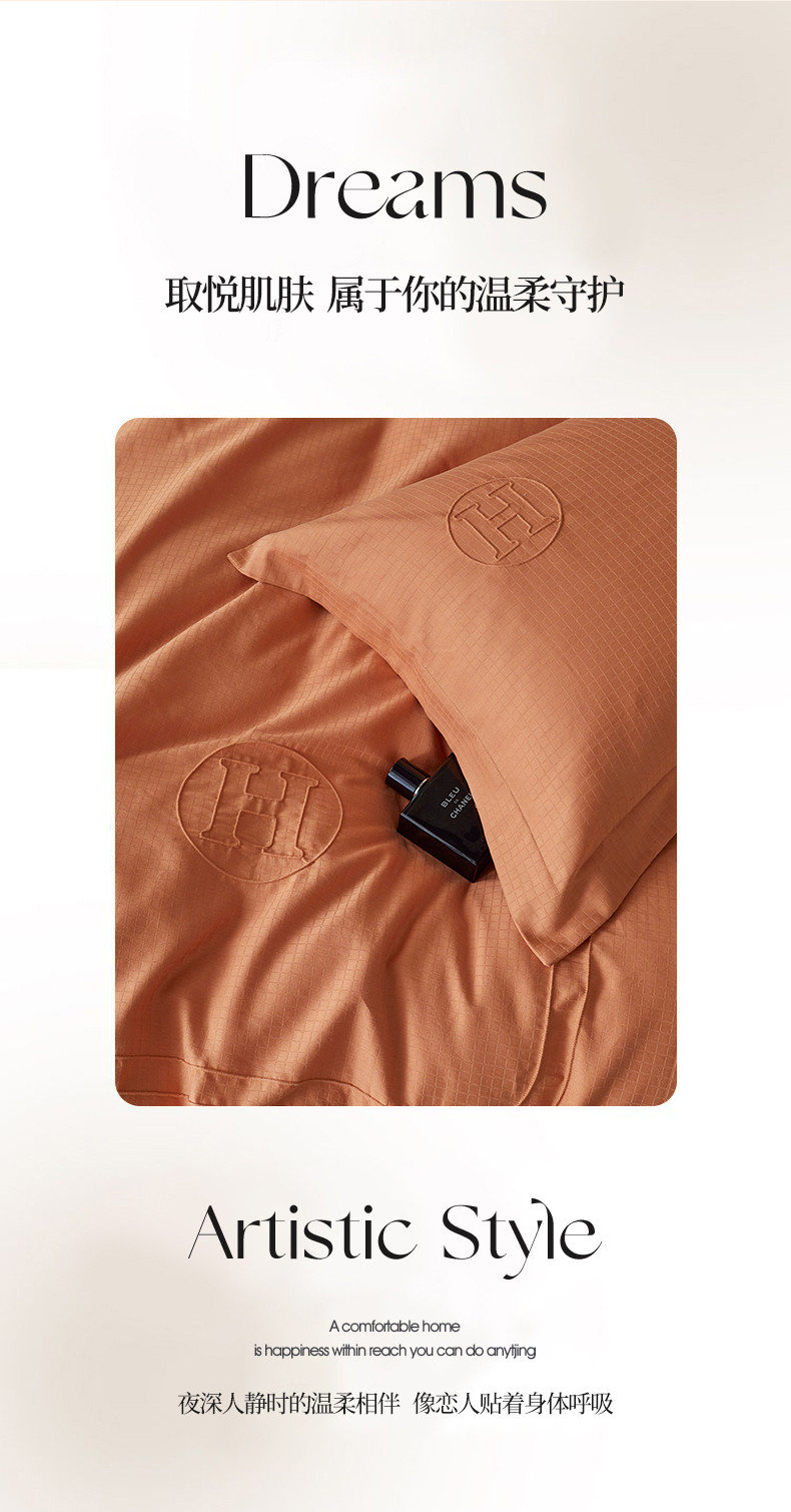 艾莱家纺2023新款A类长绒棉水洗80提花埋线工艺款四件套艾华仕爱玛橙