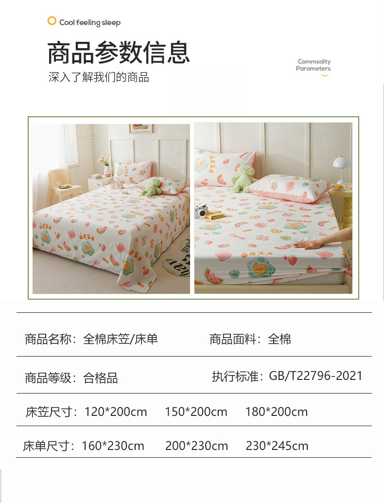 商品名称:麦伦 2023新款 全棉小清新单品床单系列 草莓果干