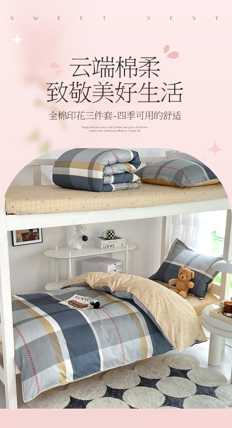 (总)多品家纺 2025春夏新款超柔水洗棉学生宿舍三件套,布鲁斯,丁香紫条,黑土地,幻影,简约格,焦糖甜心,可可西里,律动,蜜桃粉,墨尔本,暮落浅咖,糯米蓝条,奶酪芝士黄,青涩,日系黄条,松绿条,苏格兰,唯爱,星蓝