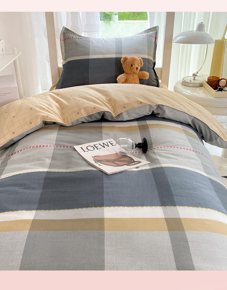 (总)多品家纺 2025新款简约复古风水洗棉格子四件套,黑小格+黑,柏林+黑,柏林+黑小格,黑小格+杏黄,时光+黑,时光+黑白格