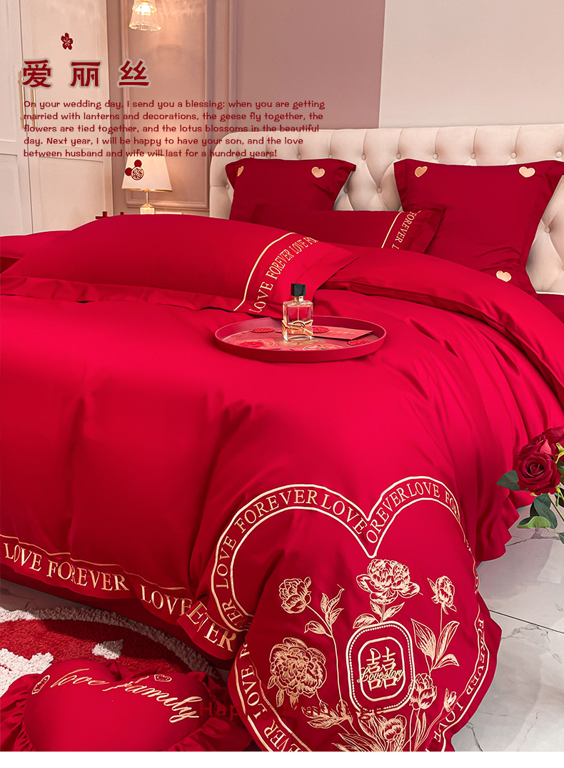 当前位置: 91家纺网 > 商品网购 > 床品套件 > 四件套 > 婚庆四件套 > 新款亲肤舒适时尚婚庆四件套系列 爱丽丝
