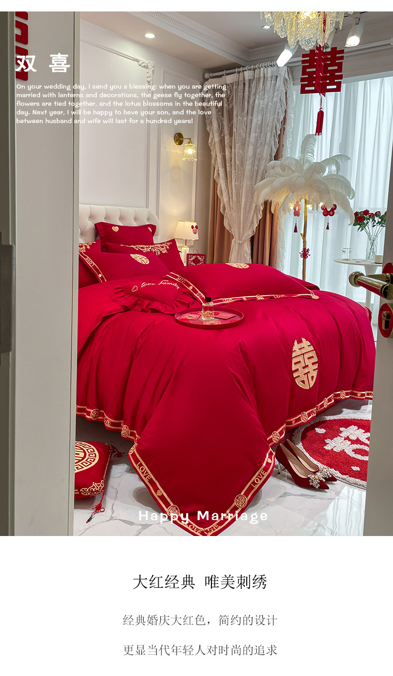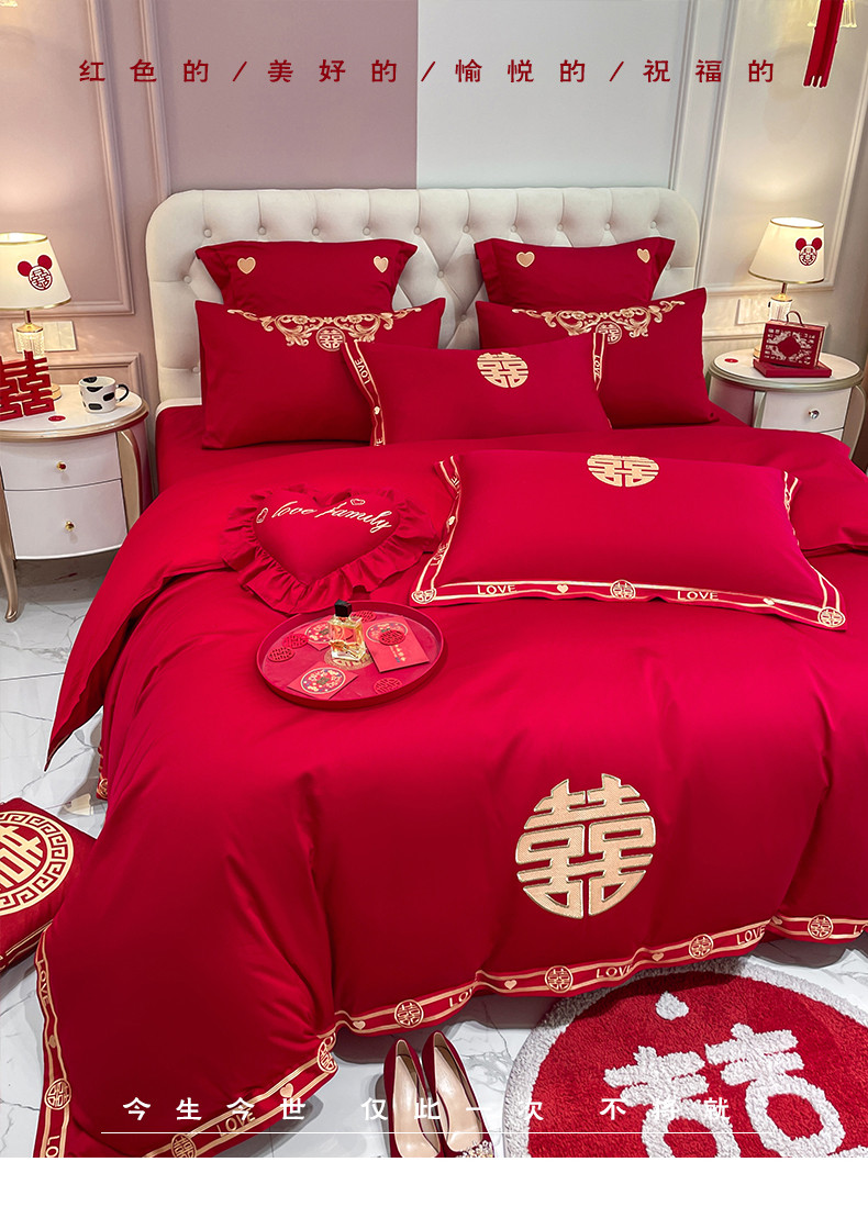 当前位置: 91家纺网 > 商品网购 > 床品套件 > 四件套 > 婚庆四件套 > 新款亲肤舒适时尚婚庆四件套系列 双喜