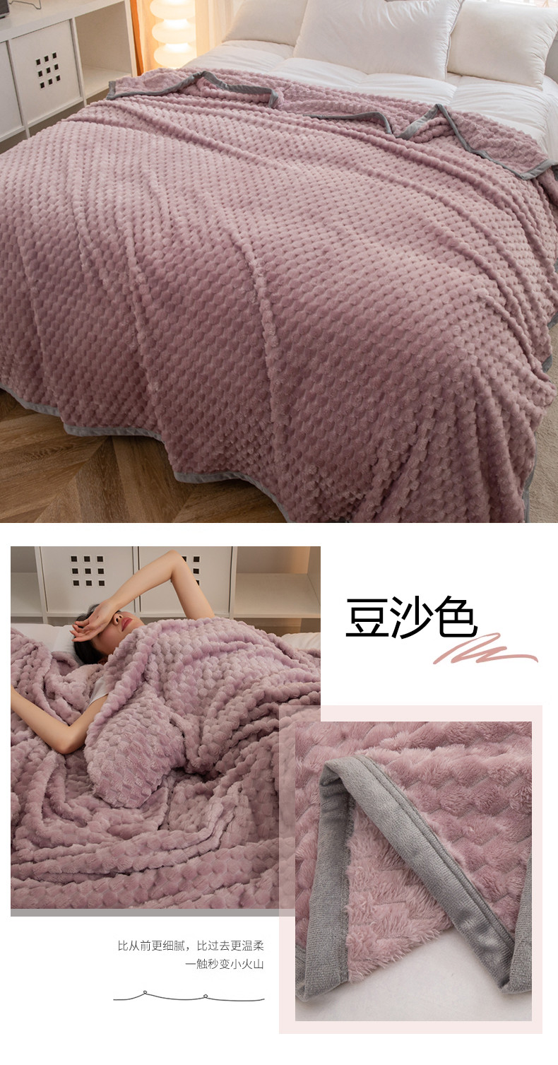(总)卡琪曼 2023新款玫瑰绒 毯子毛毯盖毯,蓝色,绿色,奶白,浅粉色,驼色,紫色,灰色