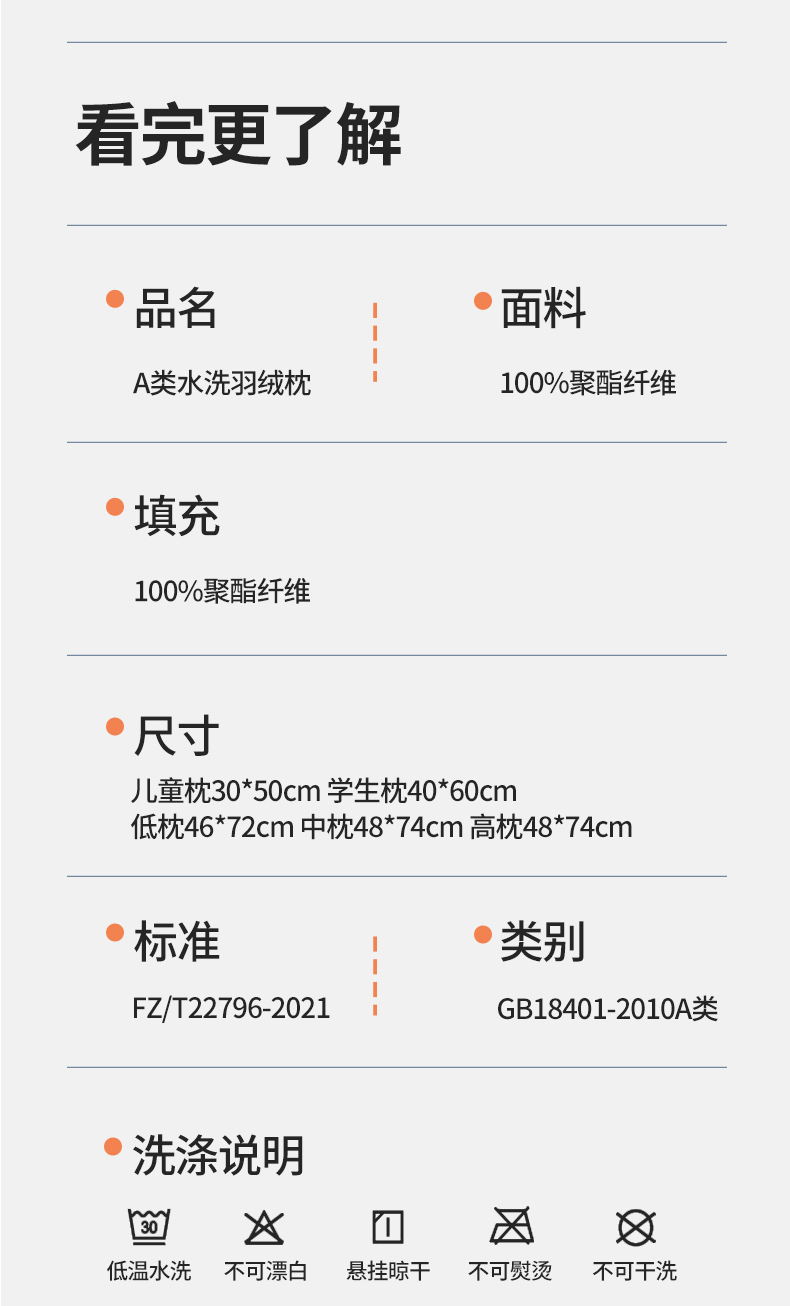 商品名称:(总)枕之坊 2023新款A类可水洗羽丝枕头枕芯