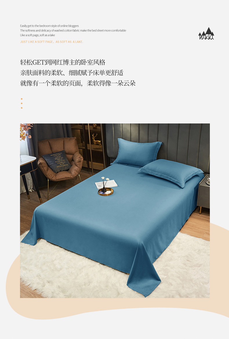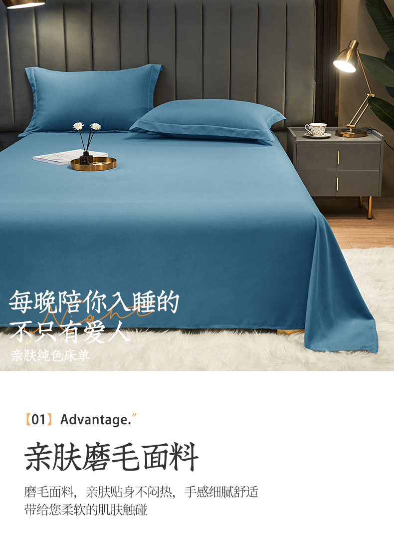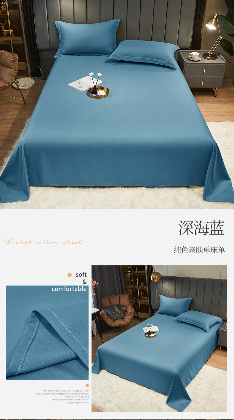 商品名称:恬澳家纺 2024新款跑量亲肤磨毛床单 深海蓝